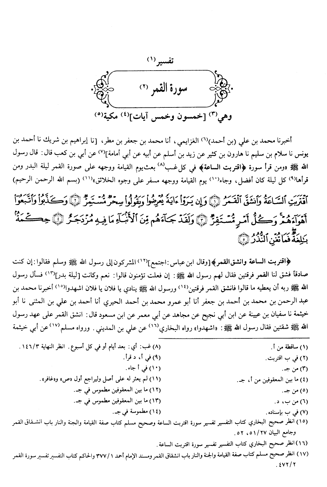 بسم الله الرحمن الرحيم {اقْتَرَبَتِ السَّاعَةُ وَانْشَقَّ الْقَمَرُ {1} وَإِنْ يَرَوْا آيَةً يُعْرِضُوا وَيَقُولُوا سِحْرٌ مُسْتَمِرٌّ {2} وَكَذَّبُوا وَاتَّبَعُوا أَهْوَاءَهُمْ وَكُلُّ أَمْرٍ مُسْتَقِرٌّ {3} وَلَقَدْ جَاءَهُمْ مِنَ الأَنْبَاءِ مَا فِيهِ مُزْدَجَرٌ {4} حِكْمَةٌ بَالِغَةٌ فَمَا تُغْنِ النُّذُرُ {5} } [القمر: 1-5] .