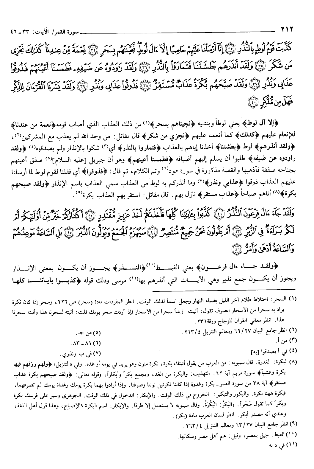 {وَلَقَدْ جَاءَ آلَ فِرْعَوْنَ} [القمر: 41] يعني: القبط، النذر يجوز أن يكون بمعنى: الإنذار، ويجوز أن يكون: جمع نذير، وهي الآيات التي أنذرهم بها موسى، وذلك قوله: {كَذَّبُوا بِآيَاتِنَا كُلِّهَا