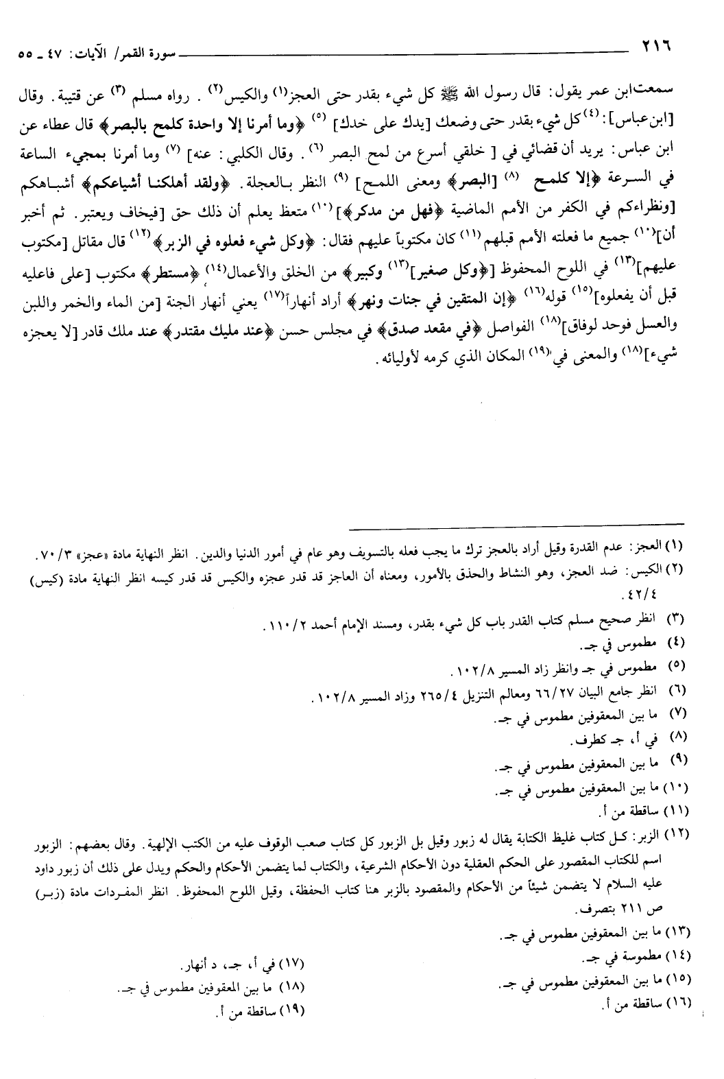 سَمِعْتُ ابْنَ عُمَرَ، يَقُولُ: قَالَ رَسُولُ اللَّهِ صَلَّى اللهُ عَلَيْهِ وَسَلَّمَ: «كُلُّ شَيْءٍ بِقَدَرٍ حَتَّى الْعَجْزِ وَالْكَيْسِ» رَوَاه مُسْلِمٌ، عَنْ قُتَيْبَةَ