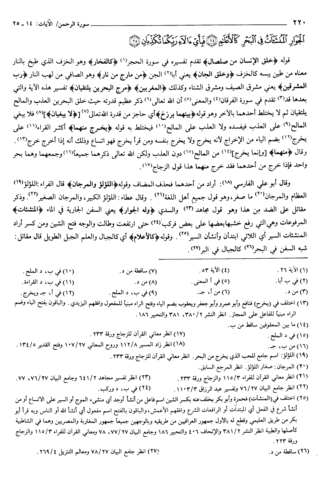 الْجَوَارِ الْمُنْشَآتُ فِي الْبَحْرِ كَالأَعْلامِ {24} فَبِأَيِّ آلاءِ رَبِّكُمَا تُكَذِّبَانِ {25} } [الرحمن: 14-25] .