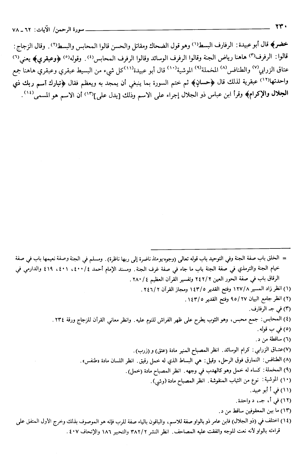 وقوله: {وَعَبْقَرِيٍّ} [الرحمن: 76] يعني: عتاق الزرابي، والطنافس المخملة الموشية، قال أبو عبيدة: كل شيء من البسيط عبقري.