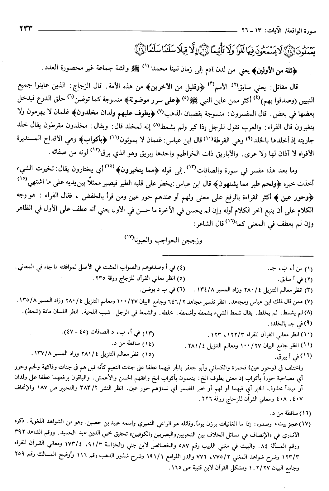 {وَقَلِيلٌ مِنَ الآخِرِينَ} [الواقعة: 14] من هذه الأمة، قال الزجاج: الذين عاينوا جميع النبيين، وصدقوا بهم، أكثر ممن عاين النبي صَلَّى اللهُ عَلَيْهِ وَسَلَّمَ.