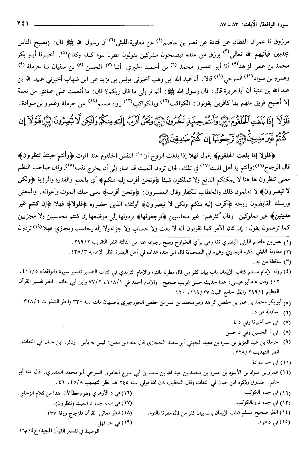 {فَلَوْلا إِذَا بَلَغَتِ الْحُلْقُومَ {83} وَأَنْتُمْ حِينَئِذٍ تَنْظُرُونَ {84} وَنَحْنُ أَقْرَبُ إِلَيْهِ مِنْكُمْ وَلَكِنْ لا تُبْصِرُونَ {85} فَلَوْلا إِنْ كُنْتُمْ غَيْرَ مَدِينِينَ {86} تَرْجِعُونَهَا إِنْ كُنْتُمْ صَادِقِينَ {87} } [الواقعة: 83-87] .