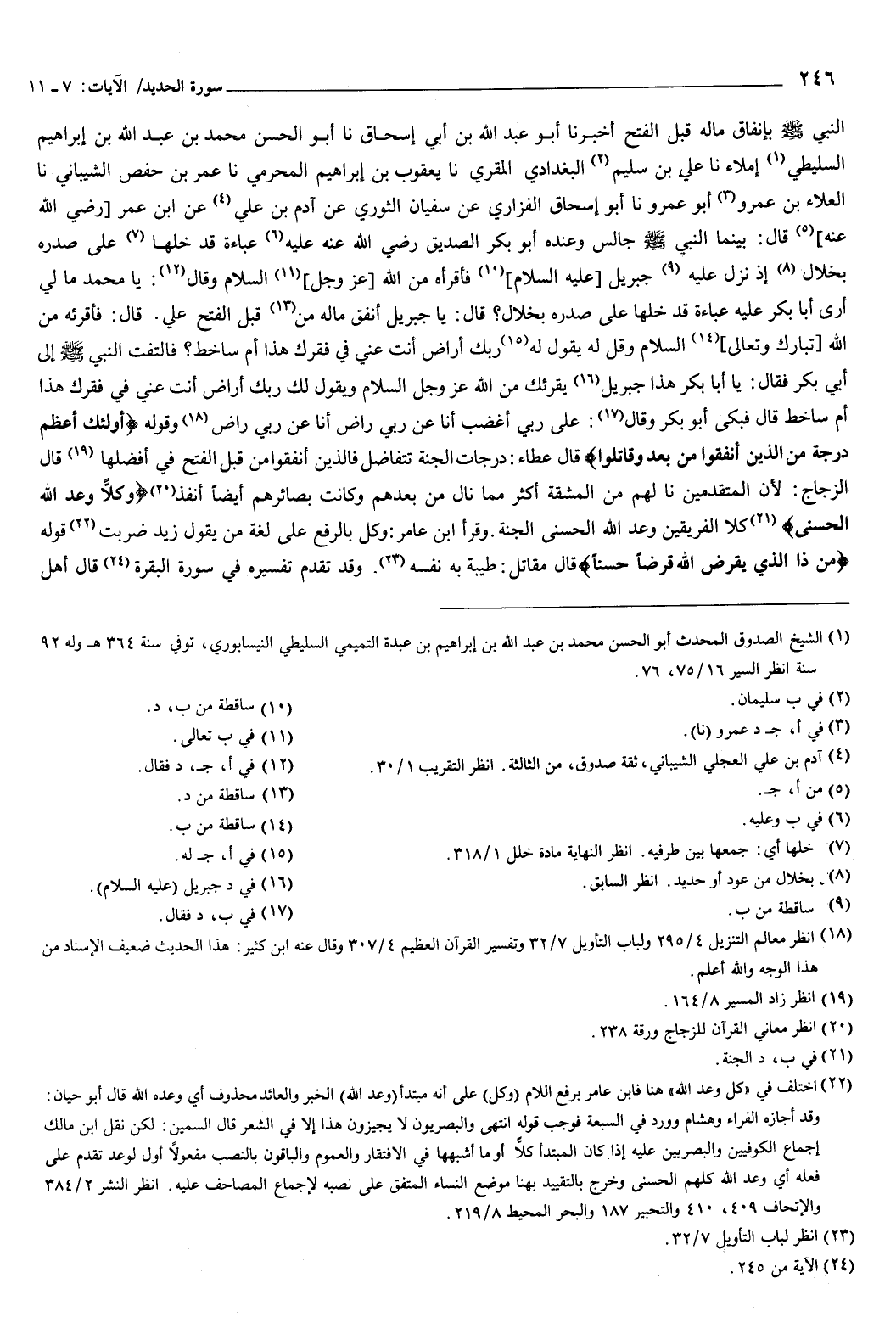 {وَكُلًّا وَعَدَ اللَّهُ الْحُسْنَى} [الحديد: 10] كلا الفريقين وعد الله الحسنى الجنة، وقرأ ابن عامر: وكل بالرفع على لغة من يقول: زيد ضربت.