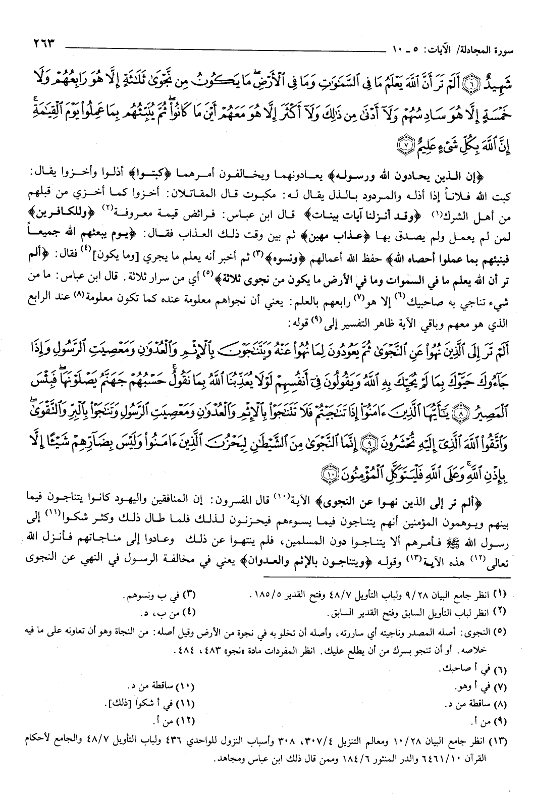 {أَلَمْ تَرَ إِلَى الَّذِينَ نُهُوا عَنِ النَّجْوَى} [المجادلة: 8] الآية، قال المفسرون: إن المنافقين واليهود كانوا يتناجون فيما بينهم، ويوهمون المؤمنين أنهم يتناجون فيما يسوءهم، فيحزنون لذلك، فلما طال ذلك وكثر، شكوا إلى رسول الله صَلَّى اللهُ عَلَيْهِ وَسَلَّمَ، فأمرهم ألا يتناجوا دون المسلمين، فلم ينتهوا عن ذلك، وعادوا إلى مناجاتهم، فأنزل الله تعالى هذه الآية.