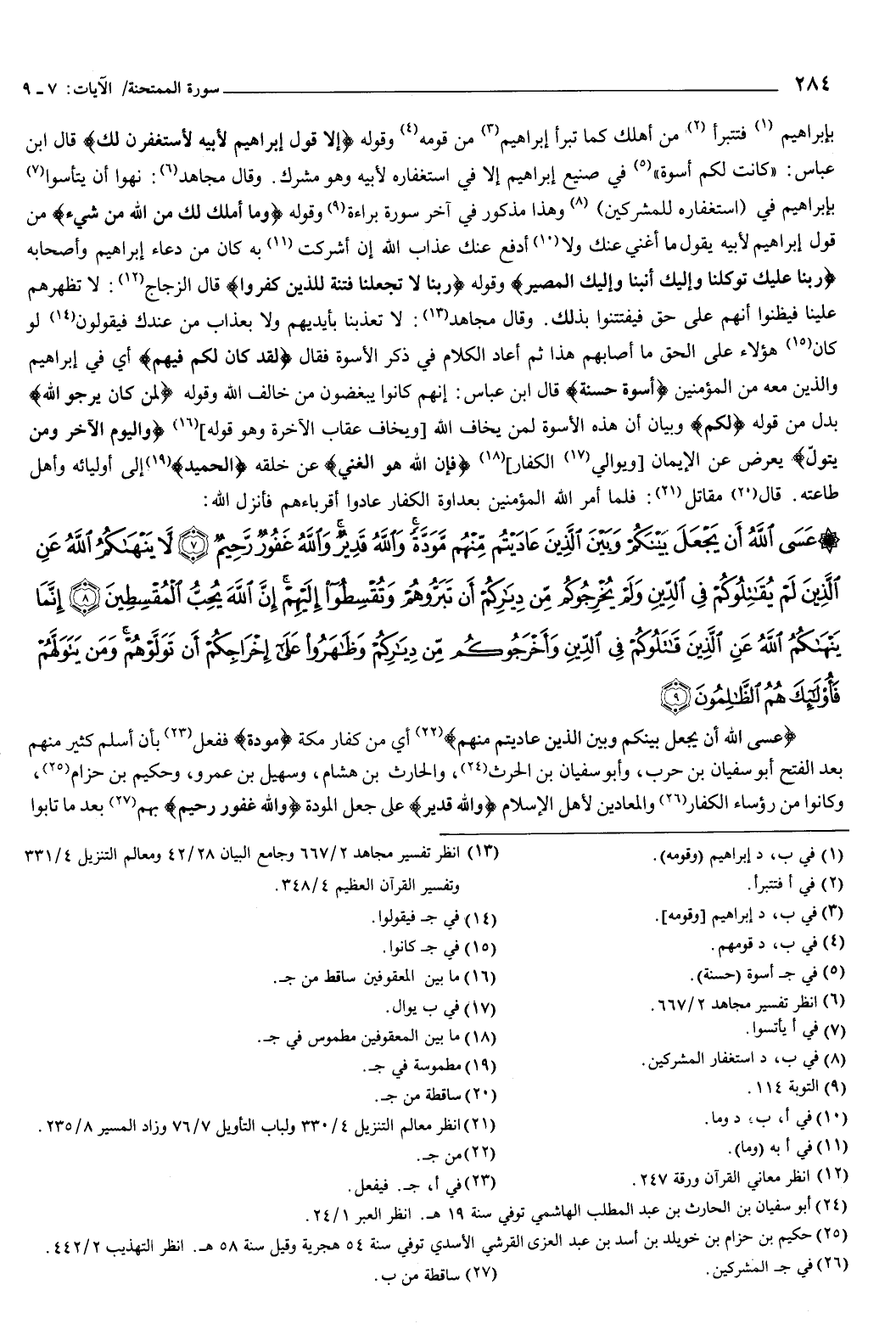 ثم أعاد الكلام في ذكر الأسوة، فقال: {لَقَدْ كَانَ لَكُمْ فِيهِمْ} [الممتحنة: 6] أي: في إبراهيم، والذين معه من المؤمنين، أسوة حسنة قال ابن عباس: إنهم كانوا يبغضون من خالف الله.