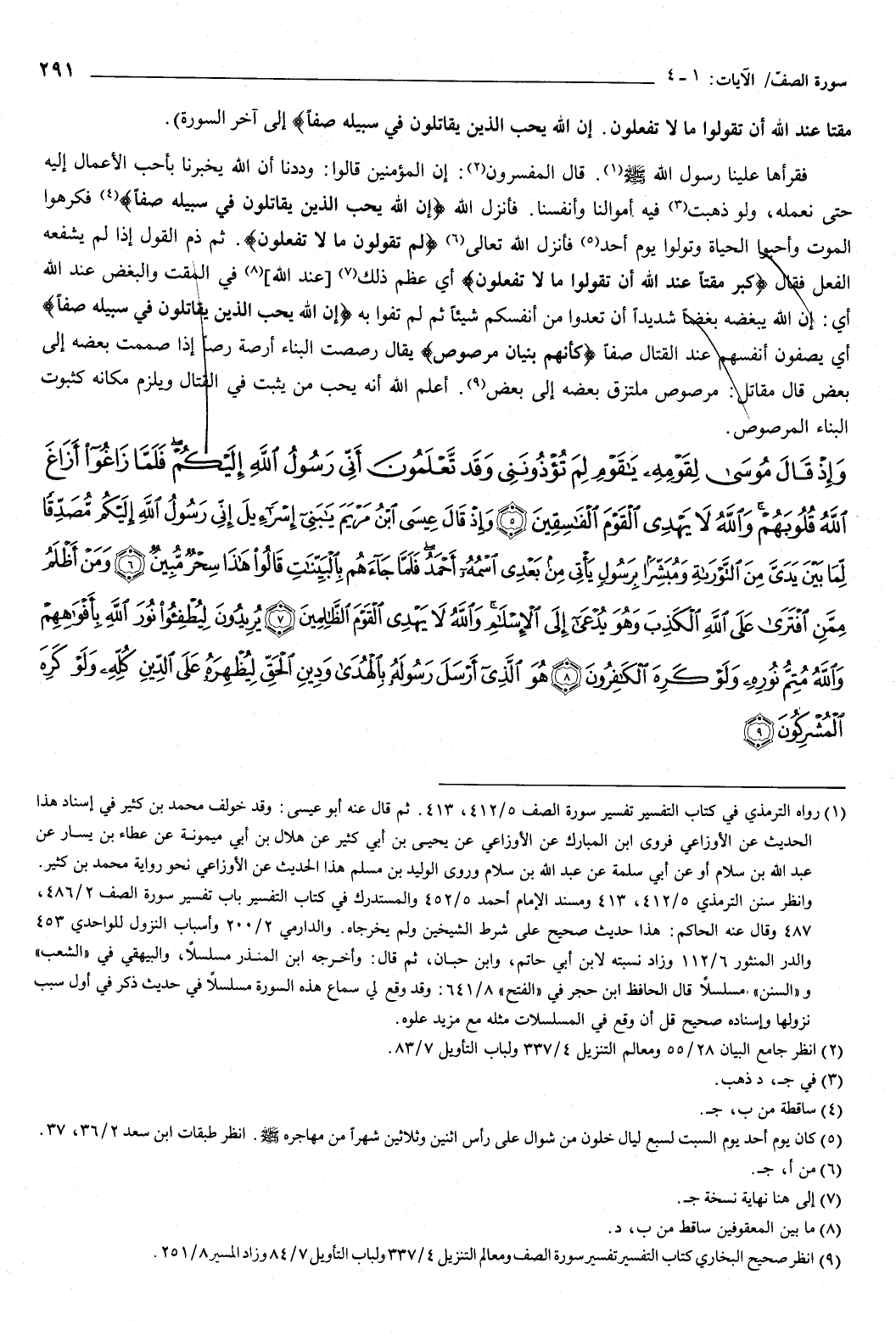 مَقْتًا عِنْدَ اللَّهِ أَنْ تَقُولُوا مَا لا تَفْعَلُونَ {3} إِنَّ اللَّهَ يُحِبُّ الَّذِينَ يُقَاتِلُونَ فِي سَبِيلِهِ صَفًّا} [الصف: 1-4] إِلَى آخِرِ السُّورَةِ،