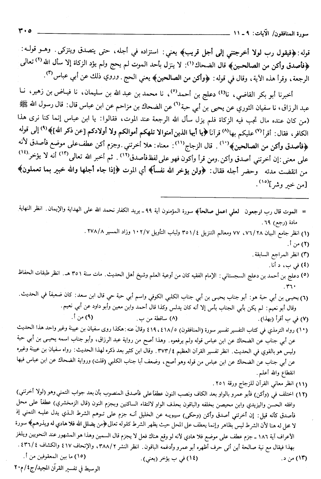 قوله: {فَيَقُولَ رَبِّ لَوْلا أَخَّرْتَنِي إِلَى أَجَلٍ قَرِيبٍ} [المنافقون: 10] يعني: استزاده في أجله، حتى يتصدق ويتزكى، وهو قوله: {فَأَصَّدَّقَ وَأَكُنْ مِنَ الصَّالِحِينَ} [المنافقون: 10] قال الضحاك: لا ينزل بأحد الموت لم يحج، ولم يؤد الزكاة، إلا سأل الله تعالى الرجعة.