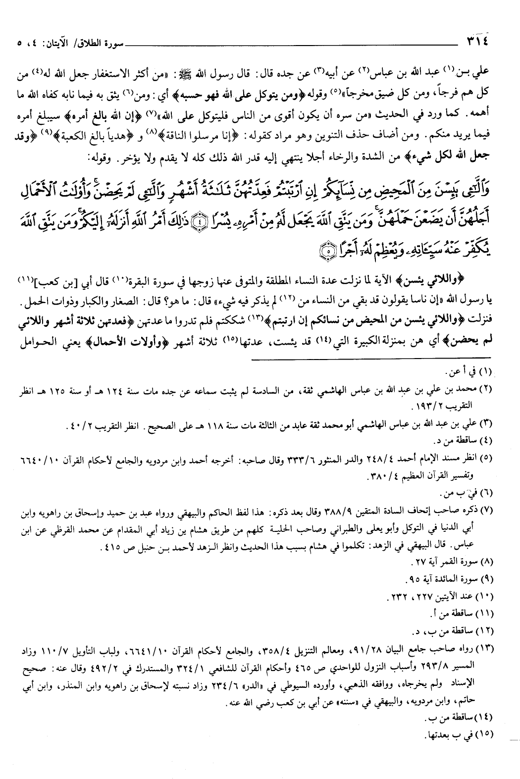 وقوله: {وَاللَّائِي يَئِسْنَ مِنَ الْمَحِيضِ مِنْ نِسَائِكُمْ إِنِ ارْتَبْتُمْ فَعِدَّتُهُنَّ ثَلاثَةُ أَشْهُرٍ وَاللَّائِي لَمْ يَحِضْنَ وَأُولاتُ الأَحْمَالِ أَجَلُهُنَّ أَنْ يَضَعْنَ حَمْلَهُنَّ وَمَنْ يَتَّقِ اللَّهَ يَجْعَلْ لَهُ مِنْ أَمْرِهِ يُسْرًا {4} ذَلِكَ أَمْرُ اللَّهِ أَنْزَلَهُ إِلَيْكُمْ وَمَنْ يَتَّقِ اللَّهَ يُكَفِّرْ عَنْهُ سَيِّئَاتِهِ وَيُعْظِمْ لَهُ أَجْرًا {5} } [الطلاق: 4-5] .