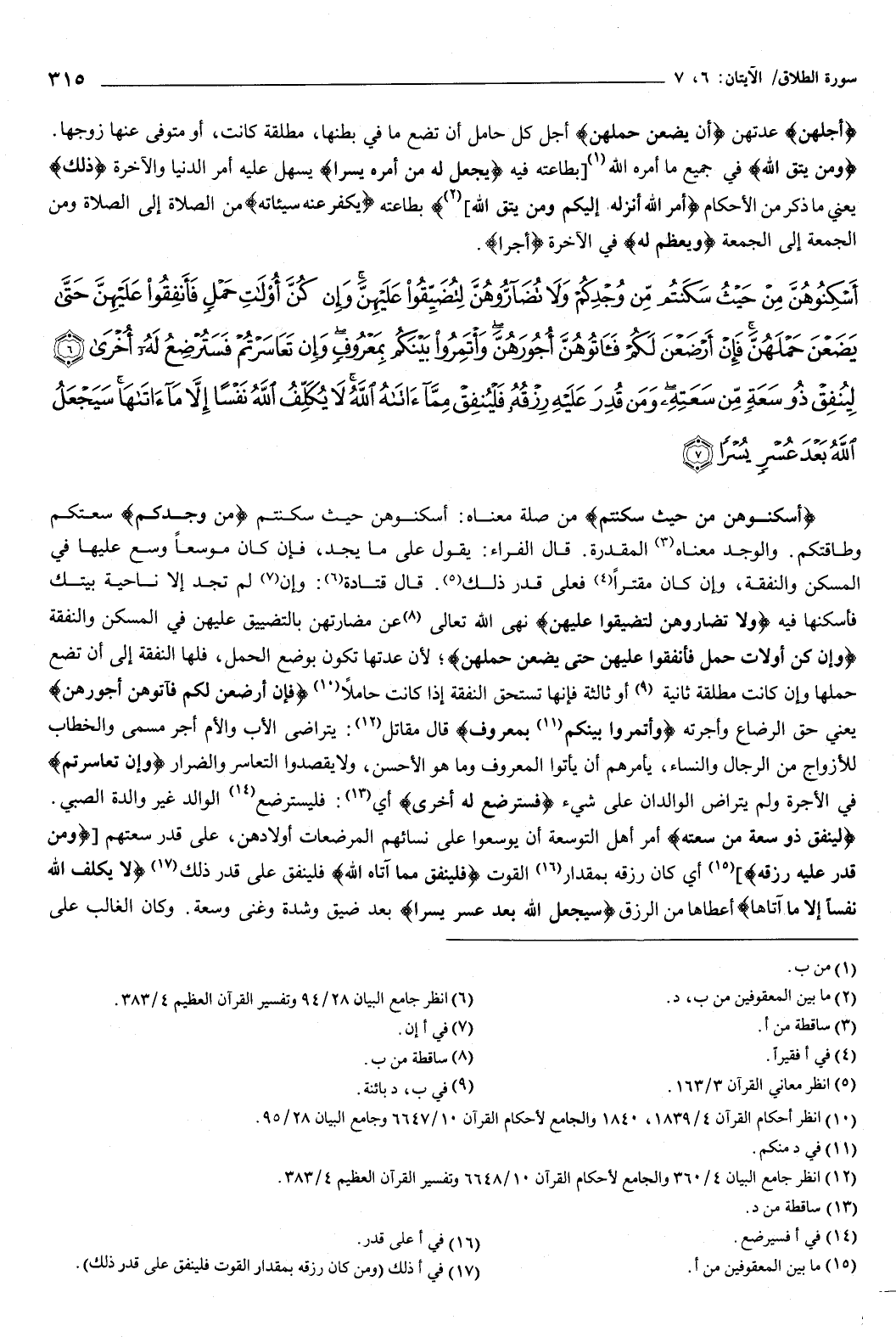 {أَسْكِنُوهُنَّ مِنْ حَيْثُ سَكَنْتُمْ مِنْ وُجْدِكُمْ وَلا تُضَارُّوهُنَّ لِتُضَيِّقُوا عَلَيْهِنَّ وَإِنْ كُنَّ أُولاتِ حَمْلٍ فَأَنْفِقُوا عَلَيْهِنَّ حَتَّى يَضَعْنَ حَمْلَهُنَّ فَإِنْ أَرْضَعْنَ لَكُمْ فَآتُوهُنَّ أُجُورَهُنَّ وَأْتَمِرُوا بَيْنَكُمْ بِمَعْرُوفٍ وَإِنْ تَعَاسَرْتُمْ فَسَتُرْضِعُ لَهُ أُخْرَى {6} لِيُنْفِقْ ذُو سَعَةٍ مِنْ سَعَتِهِ وَمَنْ قُدِرَ عَلَيْهِ رِزْقُهُ فَلْيُنْفِقْ مِمَّا آتَاهُ اللَّهُ لا يُكَلِّفُ اللَّهُ نَفْسًا إِلا مَا آتَاهَا سَيَجْعَلُ اللَّهُ بَعْدَ عُسْرٍ يُسْرًا {7} } [الطلاق: 6-7] .