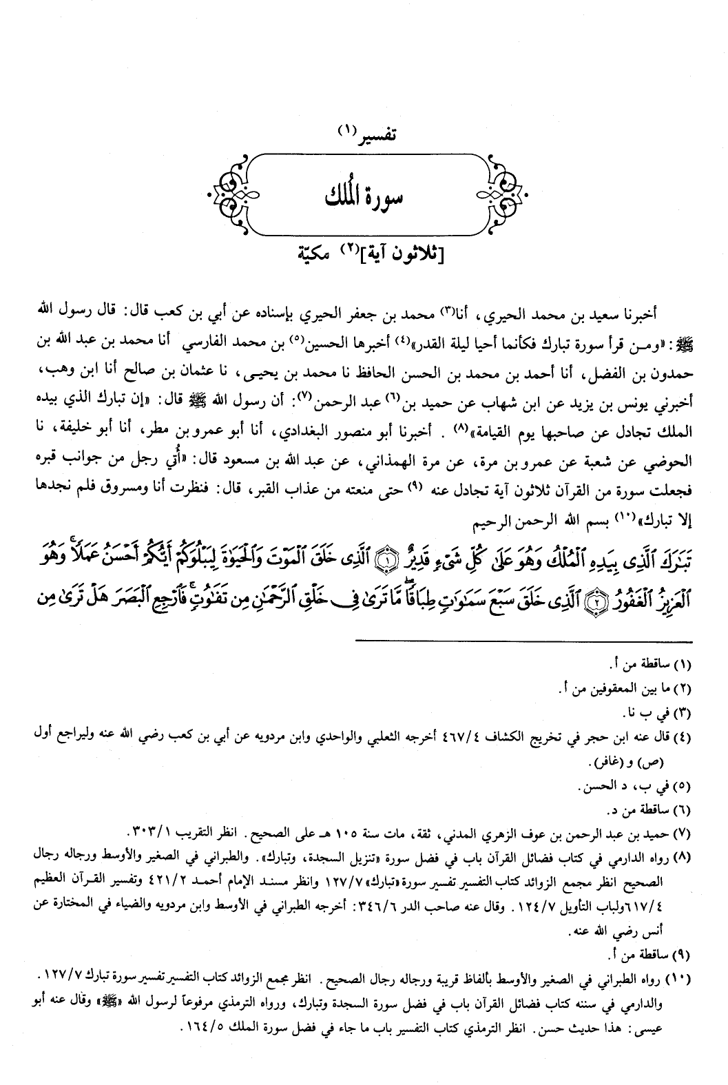 بسم الله الرحمن الرحيم {تَبَارَكَ الَّذِي بِيَدِهِ الْمُلْكُ وَهُوَ عَلَى كُلِّ شَيْءٍ قَدِيرٌ {1} الَّذِي خَلَقَ الْمَوْتَ وَالْحَيَاةَ لِيَبْلُوَكُمْ أَيُّكُمْ أَحْسَنُ عَمَلا وَهُوَ الْعَزِيزُ الْغَفُورُ {2} الَّذِي خَلَقَ سَبْعَ سَمَوَاتٍ طِبَاقًا مَا تَرَى فِي خَلْقِ الرَّحْمَنِ مِنْ تَفَاوُتٍ فَارْجِعِ الْبَصَرَ هَلْ تَرَى مِنْ