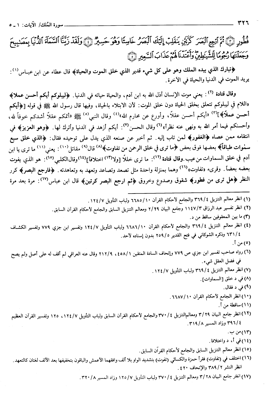 فُطُورٍ {3} ثُمَّ ارْجِعِ الْبَصَرَ كَرَّتَيْنِ يَنْقَلِبْ إِلَيْكَ الْبَصَرُ خَاسِئًا وَهُوَ حَسِيرٌ {4} وَلَقَدْ زَيَّنَّا السَّمَاءَ الدُّنْيَا بِمَصَابِيحَ وَجَعَلْنَاهَا رُجُومًا لِلشَّيَاطِينِ وَأَعْتَدْنَا لَهُمْ عَذَابَ السَّعِيرِ {5} } [الملك: 1-5] .