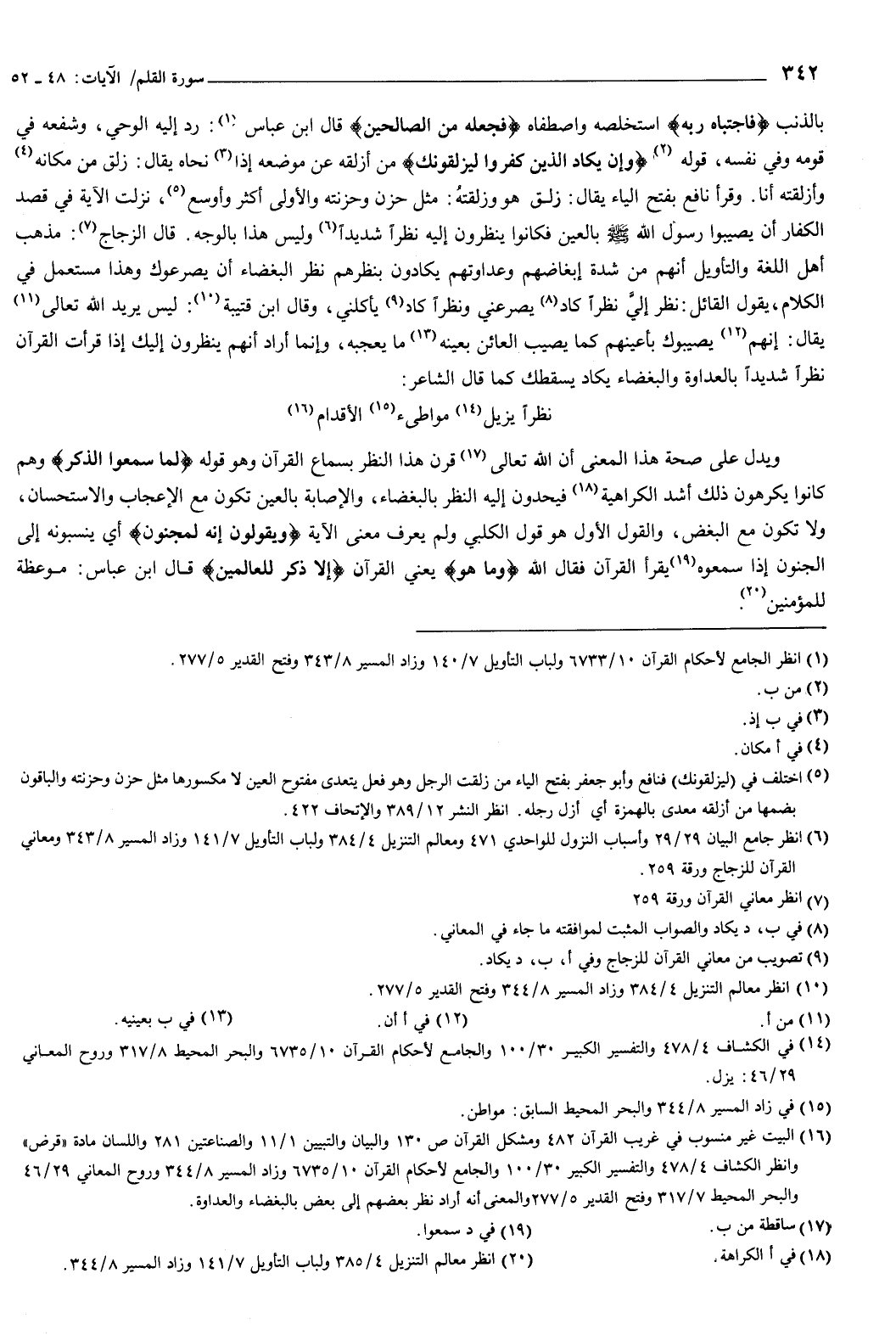 ويدل على صحة هذا المعنى: أن الله تعالى قرن هذا النظر بسماع القرآن وهو قوله: {لَمَّا سَمِعُوا الذِّكْرَ} [القلم: 51] وهم كانوا يكرهون ذلك أشد الكراهية، فيحدون إليه النظر بالبغضاء، والإصابة بالعين تكون مع الإعجاب والاستحسان، ولا تكون مع البغض، والقول الأول هو قول الكلبي، ولم يعرف معنى الآية، {وَيَقُولُونَ إِنَّهُ لَمَجْنُونٌ} [القلم: 51] أي: ينسبونه إلى الجنون، إذا سمعوه يقرأ القرآن، فقال الله: وما هو يعني: القرآن، {إِلا ذِكْرٌ لِلْعَالَمِينَ} [القلم: 52] قال ابن عباس: موعظة للمؤمنين.