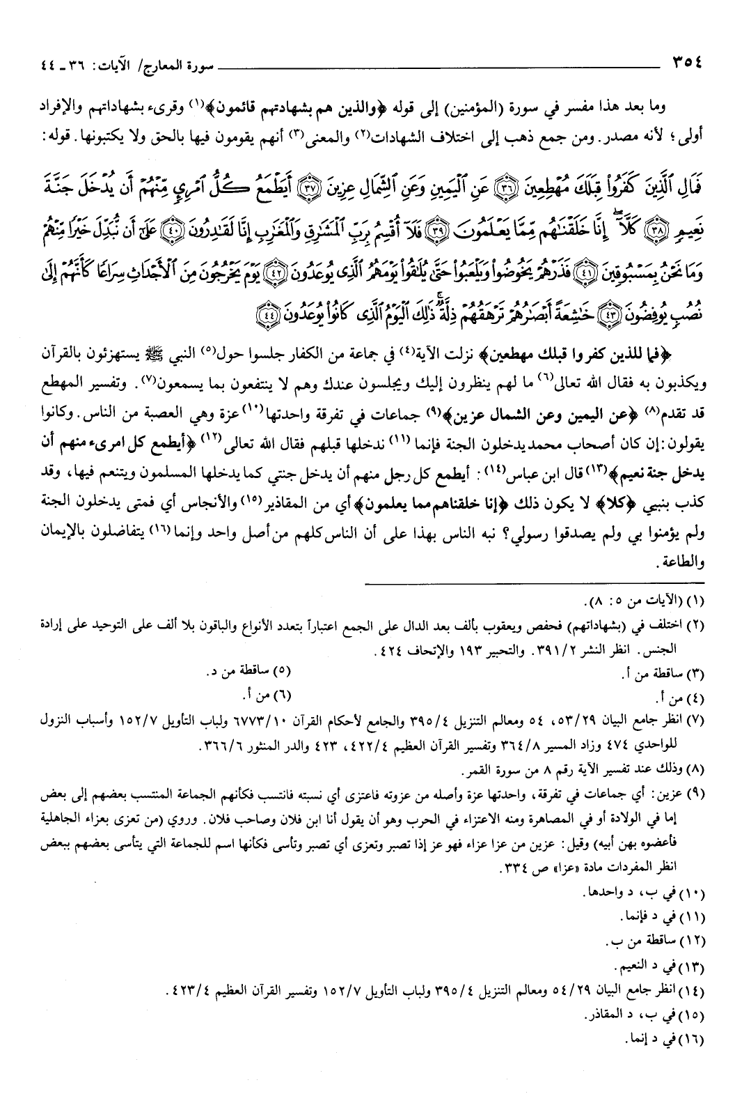 {فَمَالِ الَّذِينَ كَفَرُوا قِبَلَكَ مُهْطِعِينَ} [المعارج: 36] نزلت الآية في جماعة من الكفار، جلسوا حول النبي صَلَّى اللهُ عَلَيْهِ وَسَلَّمَ يستهزئون بالقرآن، ويكذبون به، فقال الله تعالى: ما لهم ينظرون إليك، ويجلسون عندك، وهم لا ينتفعون بما يسمعون.