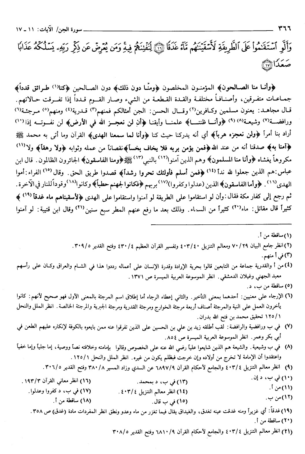 {وَأَنَّا مِنَّا الصَّالِحُونَ} [الجن: 11] المؤمنون، المخلصون، {وَمِنَّا دُونَ ذَلِكَ} [الجن: 11] دون الصالحين، {كُنَّا طَرَائِقَ قِدَدًا} [الجن: 11] جماعات متفرقين، وأصنافًا مختلفة، والقدة: القطعة من الشيء، وصار القوم قددًا إذا تفرقت حالاتهم، قال مجاهد: يعنون: مسلمين وكافرين.
