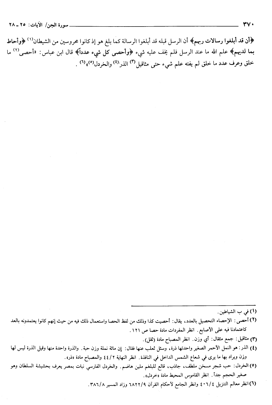 {أَنْ قَدْ أَبْلَغُوا رِسَالاتِ رَبِّهِمْ} [الجن: 28] أن الرسل قبله قد أبلغوا الرسالة، كما بلغ هو، إذ كانوا محروسين من الشيطان، {وَأَحَاطَ بِمَا لَدَيْهِمْ} [الجن: 28] علم الله ما عند الرسل، فلم يخف عليه شيء، {وَأَحْصَى كُلَّ شَيْءٍ عَدَدًا} [الجن: 28] قال ابن عباس: أحصى ما خلق، وعرف عدد ما خلق، لم يفته علم شيء حتى مثاقيل الذر، والخردل.
