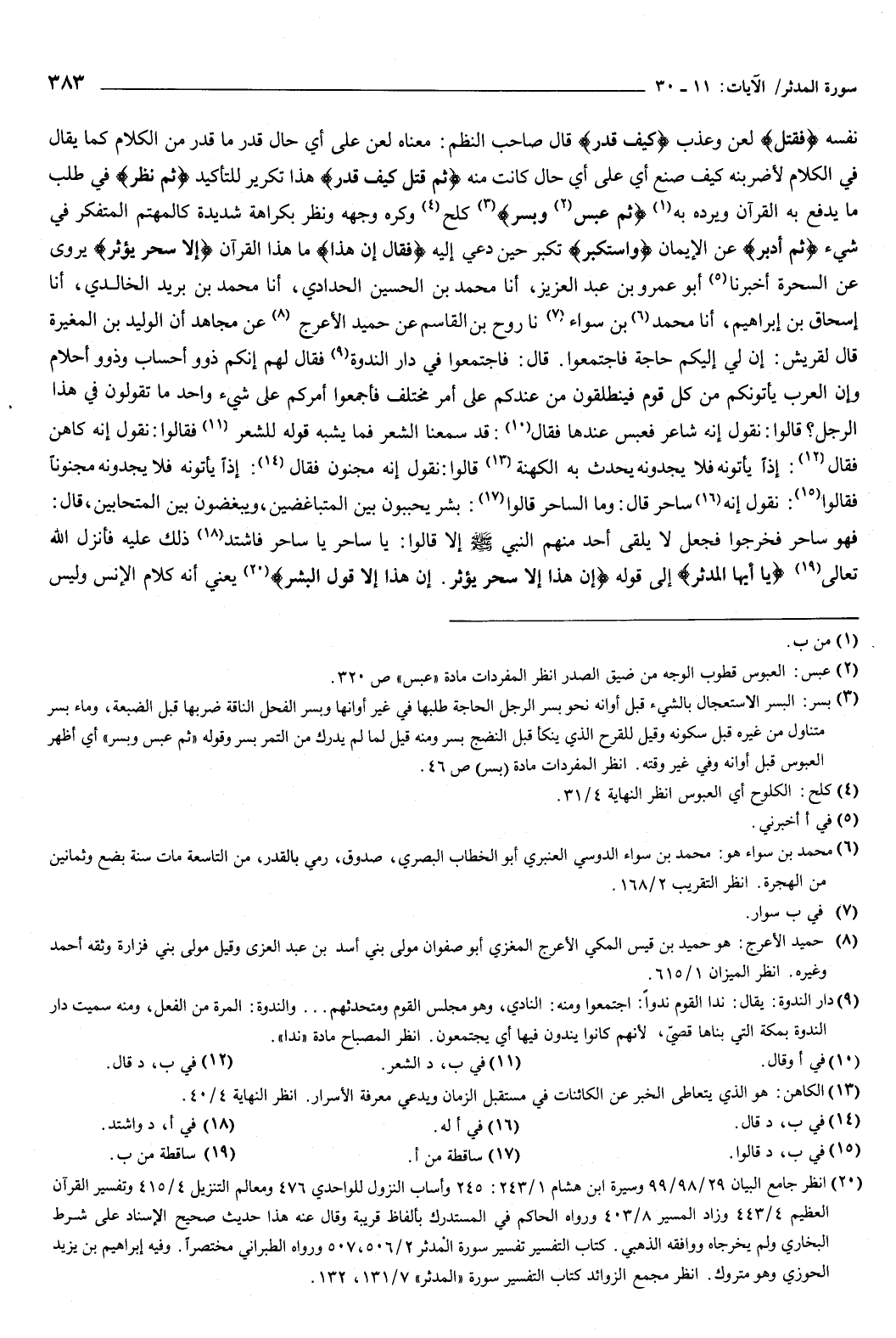 فاشتد ذلك عليه، فأنزل الله تعالى: {يَأَيُّهَا الْمُدَّثِّرُ} [المدثر: 1] إلى قوله: {إِنْ هَذَا إِلا سِحْرٌ يُؤْثَرُ {24} إِنْ هَذَا إِلا قَوْلُ الْبَشَرِ {25} } [المدثر: 24-25] .