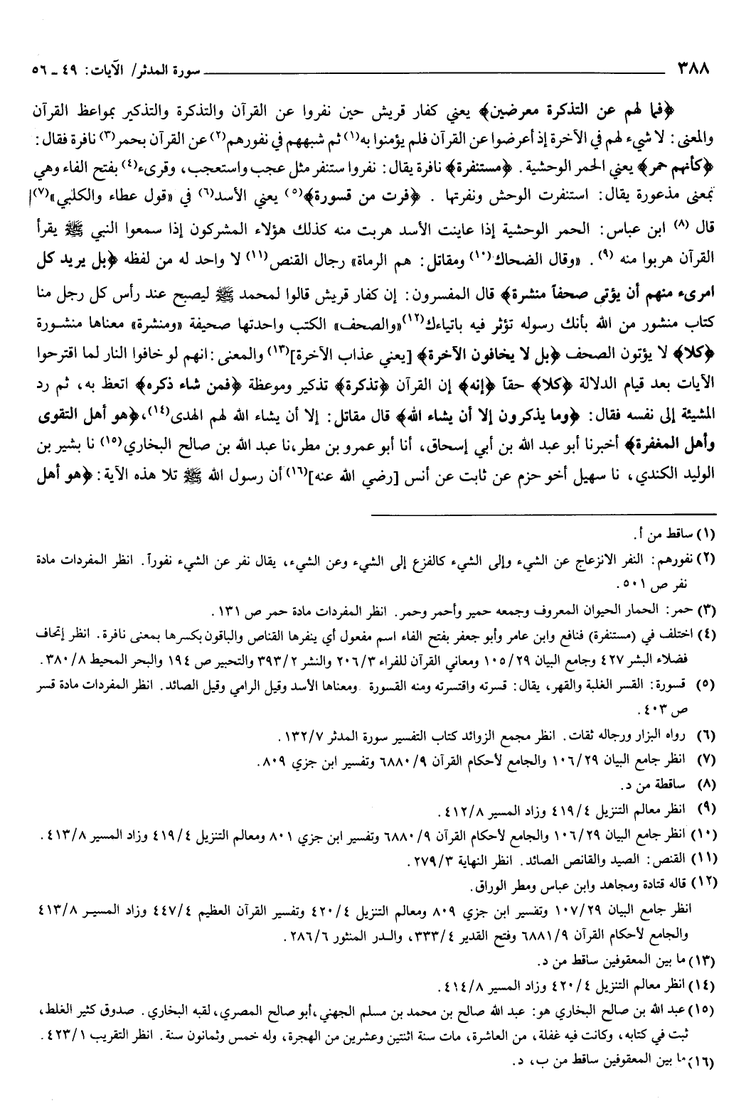 قال ابن عباس: الحمر الوحشية إذا عاينت الأسد هربت منه، كذلك هؤلاء المشركون، إذا سمعوا النبي صَلَّى اللهُ عَلَيْهِ وَسَلَّمَ يقرأ القرآن، هربوا منه.