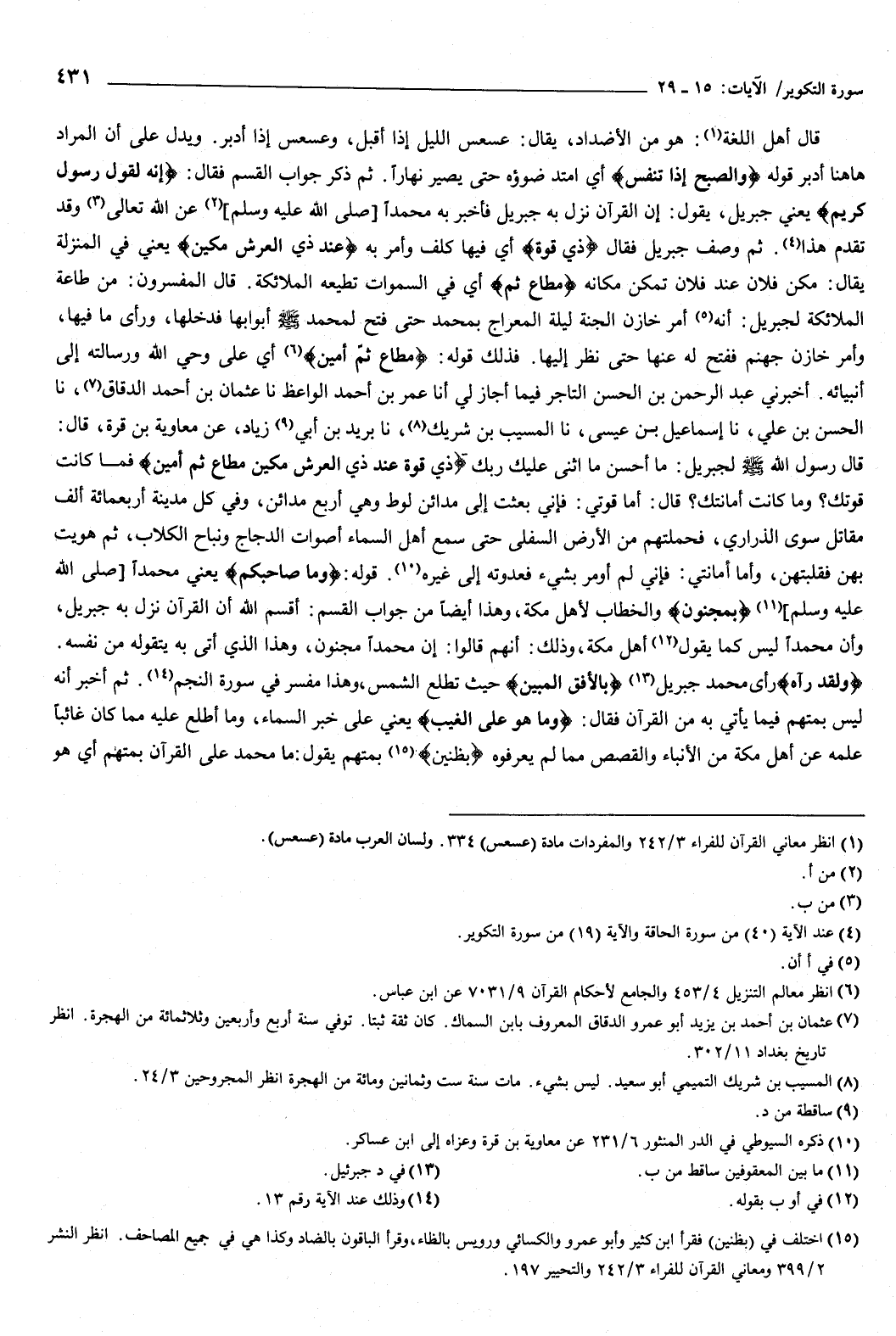 ثم ذكر جواب القسم، فقال: {إِنَّهُ لَقَوْلُ رَسُولٍ كَرِيمٍ} [التكوير: 19] يعني: جبريل، يقول: إن القرآن نزل به جبريل، فأخبر به محمدًا صَلَّى اللهُ عَلَيْهِ وَسَلَّمَ عن الله تعالى وقد تقدم هذا.