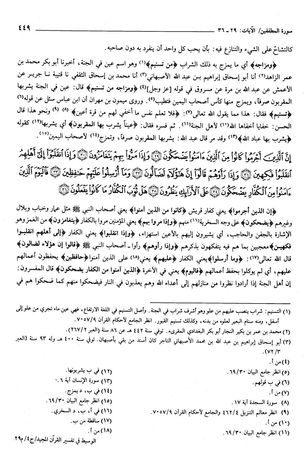 {إِنَّ الَّذِينَ أَجْرَمُوا كَانُوا مِنَ الَّذِينَ آمَنُوا يَضْحَكُونَ {29} وَإِذَا مَرُّوا بِهِمْ يَتَغَامَزُونَ {30} وَإِذَا انْقَلَبُوا إِلَى أَهْلِهِمُ انْقَلَبُوا فَكِهِينَ {31} وَإِذَا رَأَوْهُمْ قَالُوا إِنَّ هَؤُلاءِ لَضَالُّونَ {32} وَمَا أُرْسِلُوا عَلَيْهِمْ حَافِظِينَ {33} فَالْيَوْمَ الَّذِينَ آمَنُوا مِنَ الْكُفَّارِ يَضْحَكُونَ {34} عَلَى الأَرَائِكِ يَنْظُرُونَ {35} هَلْ ثُوِّبَ الْكُفَّارُ مَا كَانُوا يَفْعَلُونَ {36} } [المطففين: 29-36] .