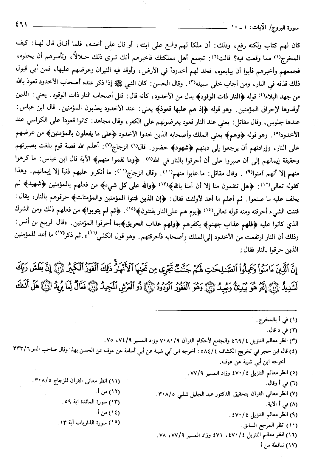 ثم ذكر ما أعد للمؤمنين الذين حرقوا بالنار، فقال: {إِنَّ الَّذِينَ آمَنُوا وَعَمِلُوا الصَّالِحَاتِ لَهُمْ جَنَّاتٌ تَجْرِي مِنْ تَحْتِهَا الأَنْهَارُ ذَلِكَ الْفَوْزُ الْكَبِيرُ {11} إِنَّ بَطْشَ رَبِّكَ لَشَدِيدٌ {12} إِنَّهُ هُوَ يُبْدِئُ وَيُعِيدُ {13} وَهُوَ الْغَفُورُ الْوَدُودُ {14} ذُو الْعَرْشِ الْمَجِيدُ {15} فَعَّالٌ لِمَا يُرِيدُ {16} هَلْ أَتَاكَ