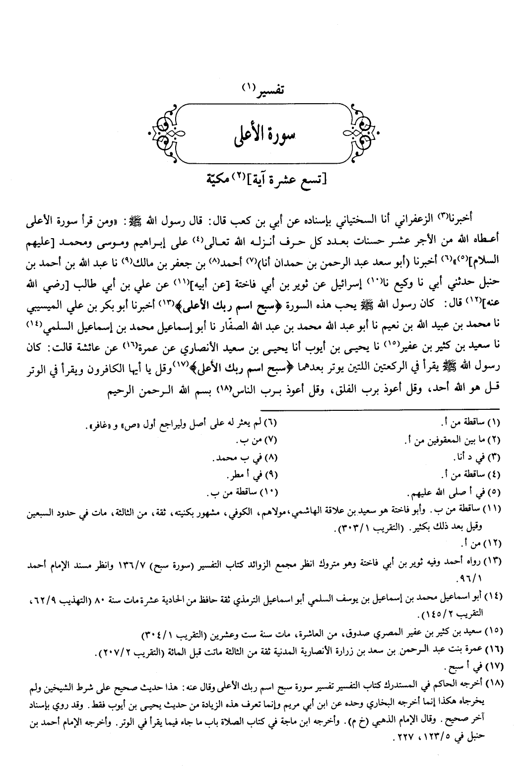 1327 - أَخْبَرَنَا الزَّعْفَرَانِيُّ، أنا السَّخْتِيَانِيُّ بِإِسْنَادِهِ، عَنْ أُبَيِّ بْنِ كَعْبٍ، قَالَ: قَالَ رَسُولُ اللَّهِ صَلَّى اللهُ عَلَيْهِ وَسَلَّمَ: «وَمَنْ قَرَأَ سُورَةَ الأَعْلَى أَعْطَاهُ اللَّهُ مِنَ الْأَجْرِ عَشْرُ حَسَنَاتٍ بِعَدَدِ كُلِّ حَرْفٍ، أَنْزَلَهُ اللَّهُ تَعَالَى عَلَى إِبْرَاهِيمَ وَمُوسَى، وَمُحَمَّدٍ عَلَيْهِمُ السَّلامُ» .