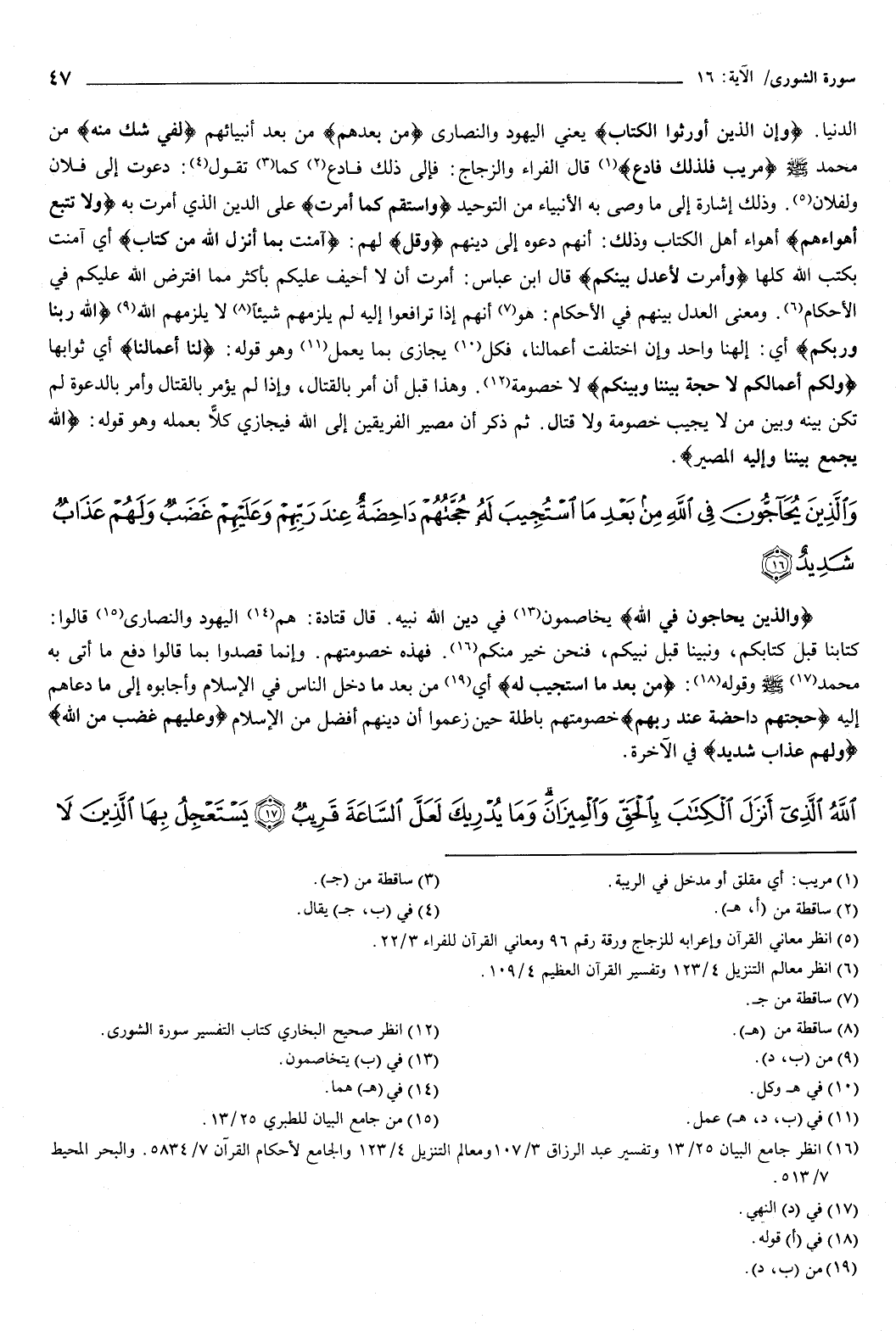 {وَالَّذِينَ يُحَاجُّونَ فِي اللَّهِ} [الشورى: 16] يخاصمون في دين الله نبيه، قال قتادة: هم اليهود والنصارى، قالوا: كتابنا قبل كتابكم، ونبينا فبل نبيكم، فنحن خير منكم.