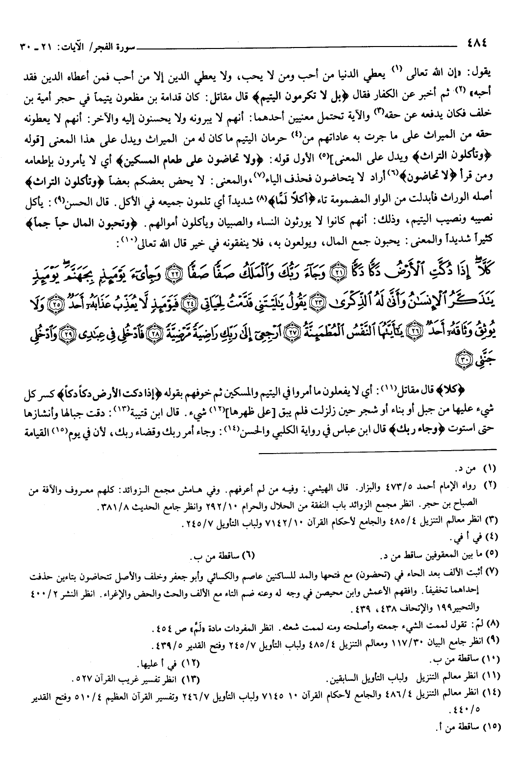 قال الله تعالى: {كَلَّا إِذَا دُكَّتِ الأَرْضُ دَكًّا دَكًّا {21} وَجَاءَ رَبُّكَ وَالْمَلَكُ صَفًّا صَفًّا {22} وَجِيءَ يَوْمَئِذٍ بِجَهَنَّمَ يَوْمَئِذٍ يَتَذَكَّرُ الإِنْسَانُ وَأَنَّى لَهُ الذِّكْرَى {23} يَقُولُ يَا لَيْتَنِي قَدَّمْتُ لِحَيَاتِي {24} فَيَوْمَئِذٍ لا يُعَذِّبُ عَذَابَهُ أَحَدٌ {25} وَلا يُوثِقُ وَثَاقَهُ أَحَدٌ {26} يَأَيَّتُهَا النَّفْسُ الْمُطْمَئِنَّةُ {27} ارْجِعِي إِلَى رَبِّكِ رَاضِيَةً مَرْضِيَّةً {28} فَادْخُلِي فِي عِبَادِي {29} وَادْخُلِي جَنَّتِي {30} } [الفجر: 21-30] .