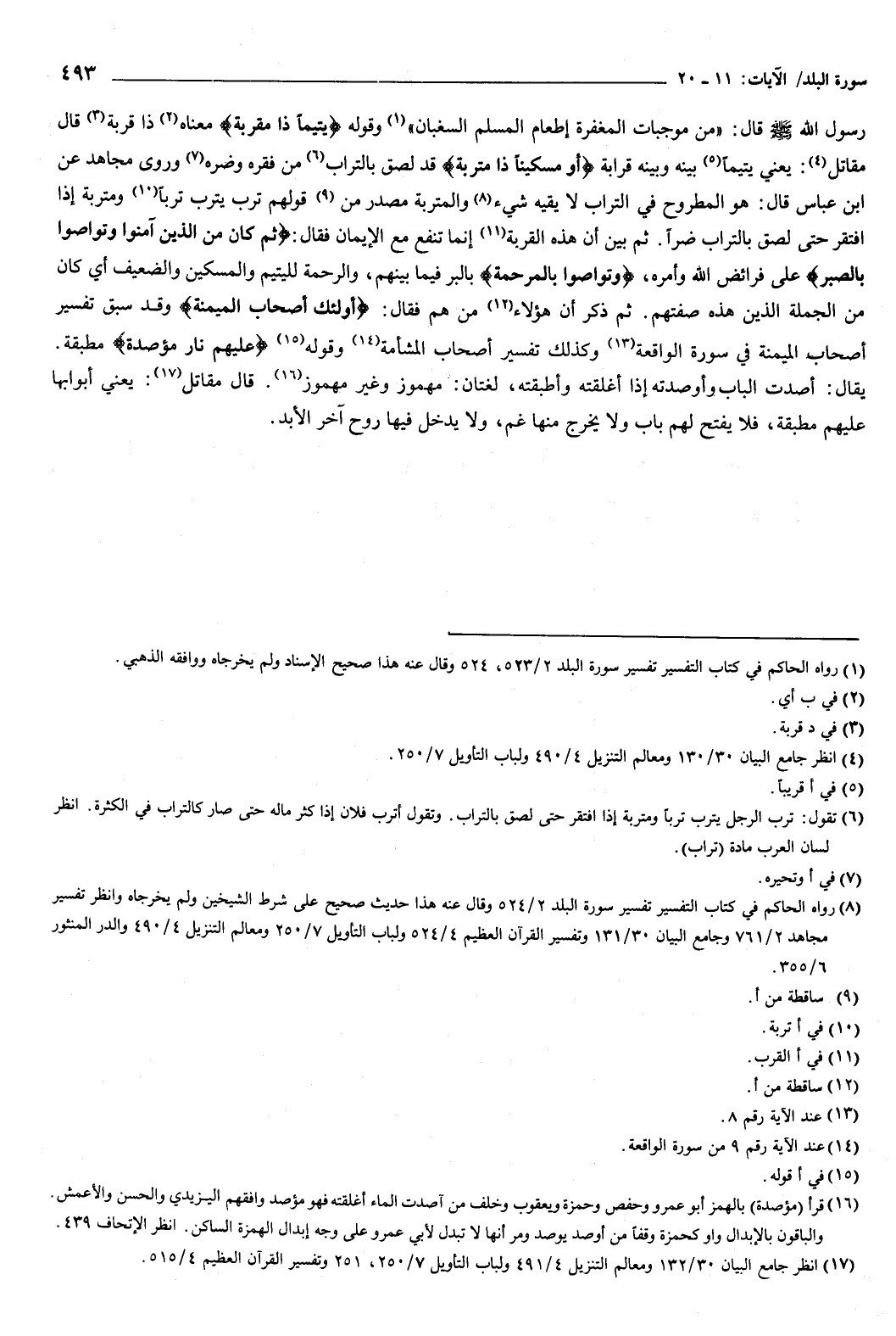 ثم بين أن هذه القربة، إنما تنفع مع الإيمان، فقال: {ثُمَّ كَانَ مِنَ الَّذِينَ آمَنُوا وَتَوَاصَوْا بِالصَّبْرِ} [البلد: 17] على فرائض الله وأمره، وتواصوا بالمرحمة بالبر فيما بينهم، والرحمة لليتيم، والمسكين، والضعيف، أي: كان من الجملة الذين هذه صفتهم.