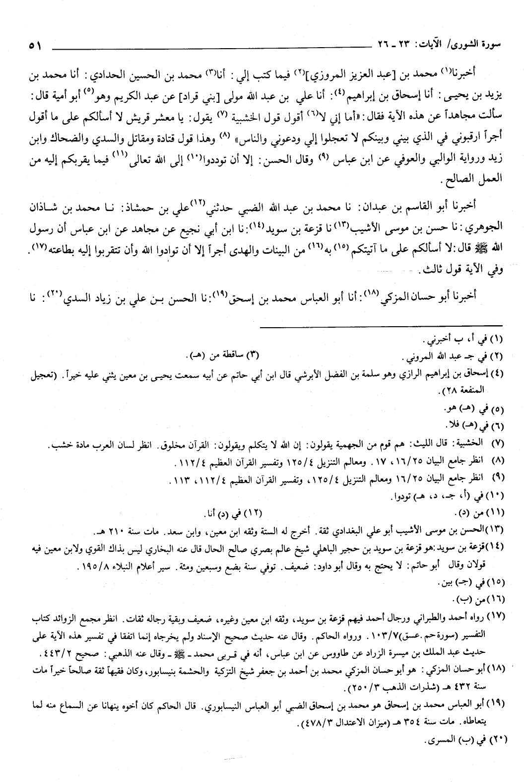818 - أَخْبَرَنَا أَبُو الْقَاسِمِ بْنُ عَبْدَانَ، نا مُحَمَّدُ بْنُ عَبْدِ اللَّهِ الضَّبِّيُّ، حَدَّثَنِي عَلِيُّ بْنُ حَمْشَاذٍ، نا مُحَمَّدُ بْنُ شَاذَانَ الْجَوْهَرِيُّ، نا حَسَنُ بْنُ مُوسَى الْأَشْيَبُ، نا قَزَعَةُ بْنُ سُوَيْدٍ، نا ابْنُ أَبِي نَجِيحٍ، عَنْ مُجَاهِدٍ، عَنِ ابْنِ عَبَّاسٍ، أَنَّ رَسُولَ اللَّهِ صَلَّى اللهُ عَلَيْهِ وَسَلَّمَ، قَالَ: «لا أَسْأَلُكُمْ عَلَى مَا آتَيْتُكُمْ مِنَ الْبَيِّنَاتِ وَالْهُدَى أَجْرًا إِلا أَنْ تُوَادُّوا اللَّهَ وَأَنْ تَتَقَرَّبُوا إِلَيْهِ بِطَاعَتِهِ» .