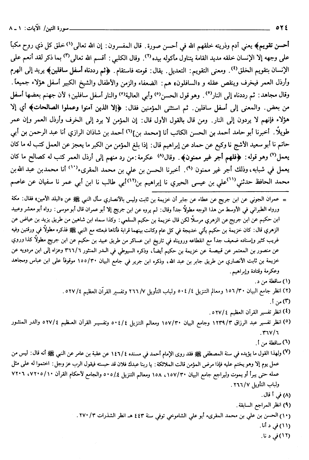 ثم استثنى المؤمنين، فقال: {إِلا الَّذِينَ آمَنُوا وَعَمِلُوا الصَّالِحَاتِ} [التين: 6] أي: إلا هؤلاء، فإنهم لا يردون إلى النار، ومن قال بالقول الأول، قال: إن المؤمن لا يرد إلى الخرف، وأرذل العمر، وإن عمر طويلًا.
