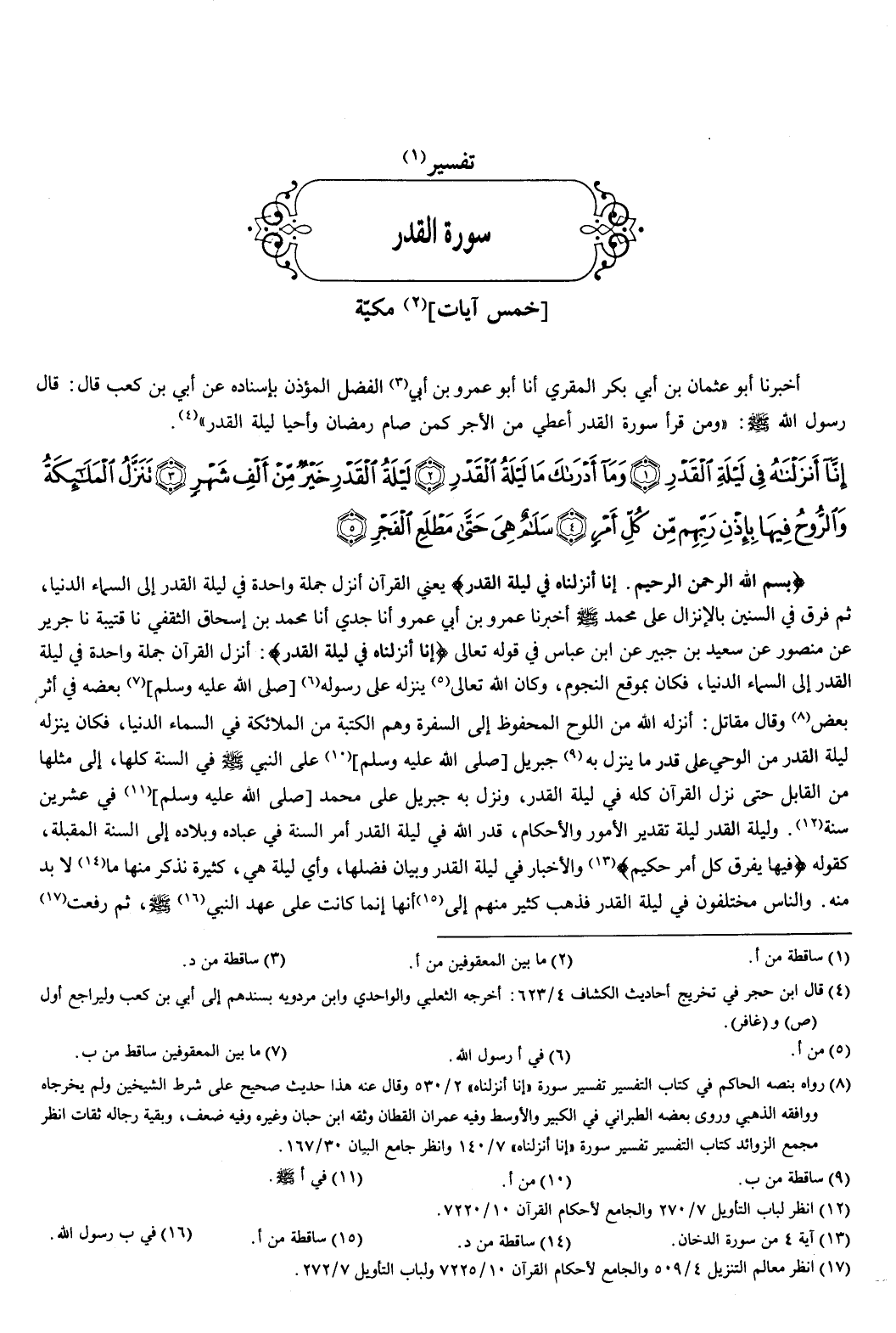 بسم الله الرحمن الرحيم {إِنَّا أَنْزَلْنَاهُ فِي لَيْلَةِ الْقَدْرِ {1} وَمَا أَدْرَاكَ مَا لَيْلَةُ الْقَدْرِ {2} لَيْلَةُ الْقَدْرِ خَيْرٌ مِنْ أَلْفِ شَهْرٍ {3} تَنَزَّلُ الْمَلائِكَةُ وَالرُّوحُ فِيهَا بِإِذْنِ رَبِّهِمْ مِنْ كُلِّ أَمْرٍ {4} سَلامٌ هِيَ حَتَّى مَطْلَعِ الْفَجْرِ {5} } [القدر: 1-5] .