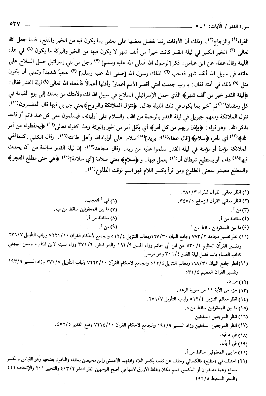ثم أخبر بما يكون في تلك الليلة، فقال: {تَنَزَّلُ الْمَلائِكَةُ وَالرُّوحُ} [القدر: 4] يعني: جبريل فيها، قال المفسرون: تنزل الملائكة ومعهم جبريل في ليلة القدر، بالرحمة من الله، والسلام على أوليائه، فيسلمون على كل عبد قائم، أو قاعد يذكر الله.