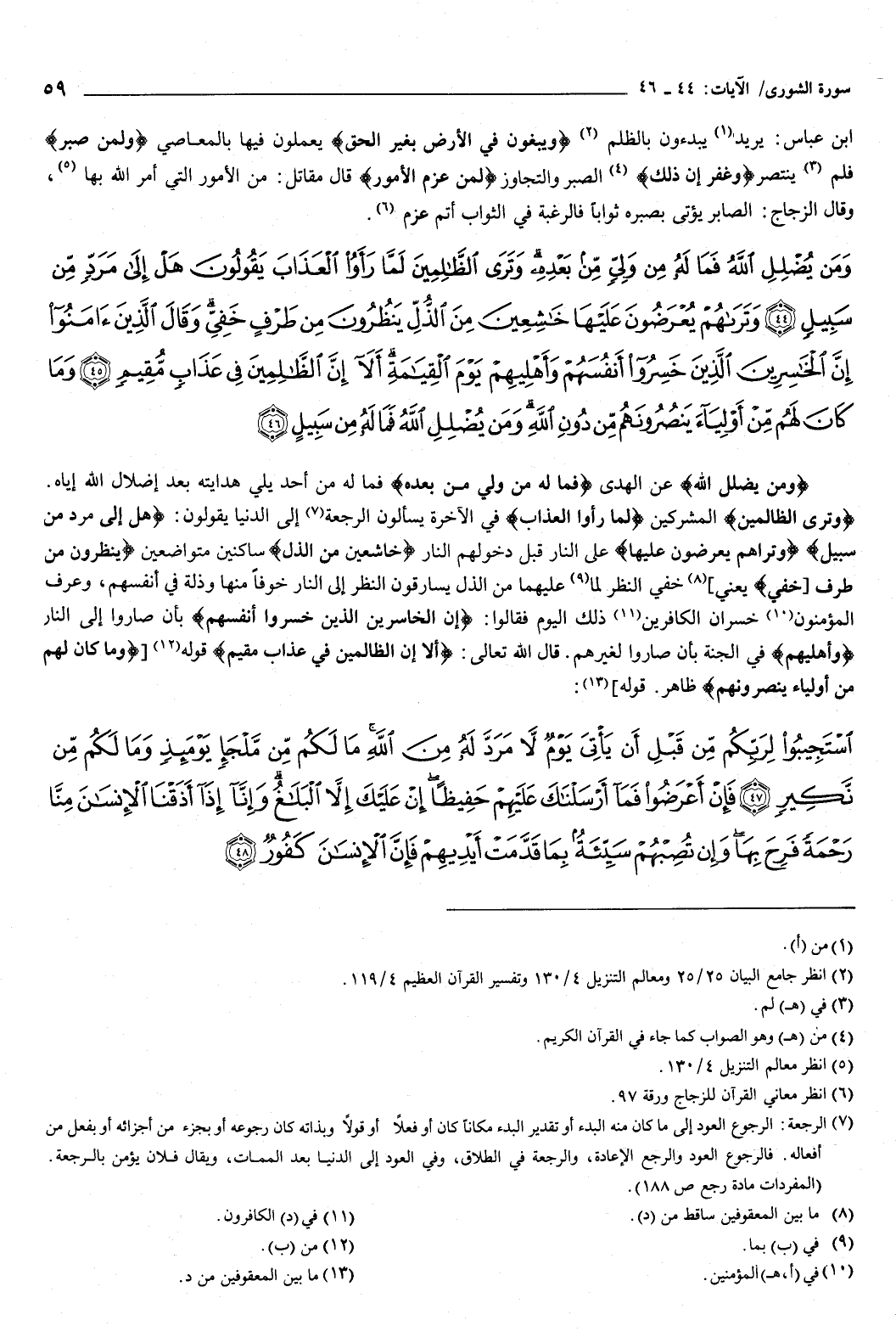 {وَمَنْ يُضْلِلِ اللَّهُ فَمَا لَهُ مِنْ وَلِيٍّ مِنْ بَعْدِهِ وَتَرَى الظَّالِمِينَ لَمَّا رَأَوُا الْعَذَابَ يَقُولُونَ هَلْ إِلَى مَرَدٍّ مِنْ سَبِيلٍ {44} وَتَرَاهُمْ يُعْرَضُونَ عَلَيْهَا خَاشِعِينَ مِنَ الذُّلِّ يَنْظُرُونَ مِنْ طَرْفٍ خَفِيٍّ وَقَالَ الَّذِينَ آمَنُوا إِنَّ الْخَاسِرِينَ الَّذِينَ خَسِرُوا أَنْفُسَهُمْ وَأَهْلِيهِمْ يَوْمَ الْقِيَامَةِ أَلا إِنَّ الظَّالِمِينَ فِي عَذَابٍ مُقِيمٍ {45} وَمَا كَانَ لَهُمْ مِنْ أَوْلِيَاءَ يَنْصُرُونَهُمْ مِنْ دُونِ اللَّهِ وَمَنْ يُضْلِلِ اللَّهُ فَمَا لَهُ مِنْ سَبِيلٍ {46} } [الشورى: 44-46] .