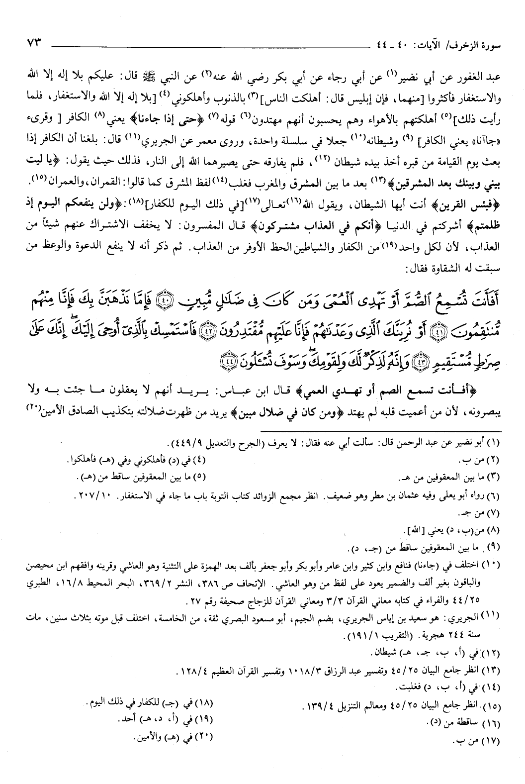 {أَفَأَنْتَ تُسْمِعُ الصُّمَّ أَوْ تَهْدِي الْعُمْيَ} [الزخرف: 40] قال ابن عباس: يريد أنهم لا يعقلون ما جئت به، ولا يبصرونه، لأن من أعميت قلبه لم يهتد.