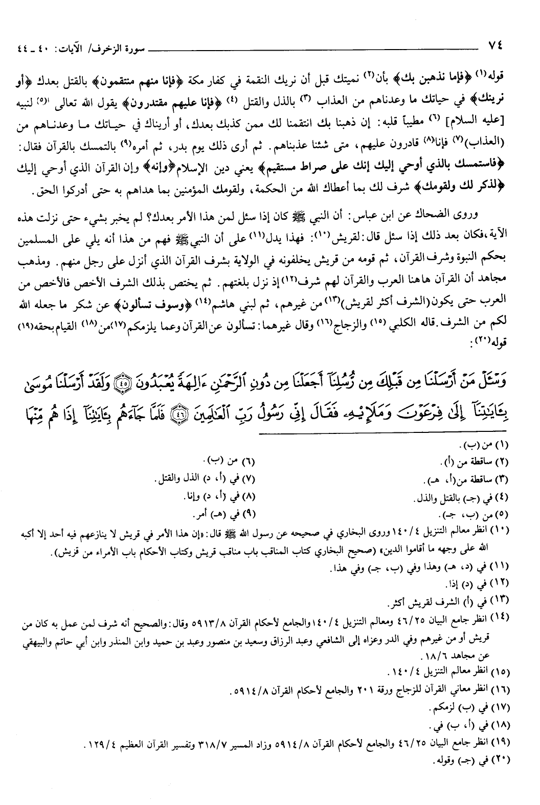 قوله: {وَاسْأَلْ مَنْ أَرْسَلْنَا مِنْ قَبْلِكَ مِنْ رُسُلِنَا أَجَعَلْنَا مِنْ دُونِ الرَّحْمَنِ آلِهَةً يُعْبَدُونَ {45} وَلَقَدْ أَرْسَلْنَا مُوسَى بِآيَاتِنَا إِلَى فِرْعَوْنَ وَمَلَئِهِ فَقَالَ إِنِّي رَسُولُ رَبِّ الْعَالَمِينَ {46} فَلَمَّا جَاءَهُمْ بِآيَاتِنَا إِذَا هُمْ مِنْهَا