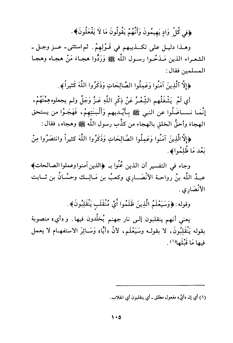 (إِلَّا الَّذِينَ آمَنُوا وَعَمِلُوا الصَّالِحَاتِ وَذَكَرُوا اللَّهَ كَثِيرًا وَانْتَصَرُوا مِنْ بَعْدِ مَا ظُلِمُوا وَسَيَعْلَمُ الَّذِينَ ظَلَمُوا أَيَّ مُنْقَلَبٍ يَنْقَلِبُونَ (227)