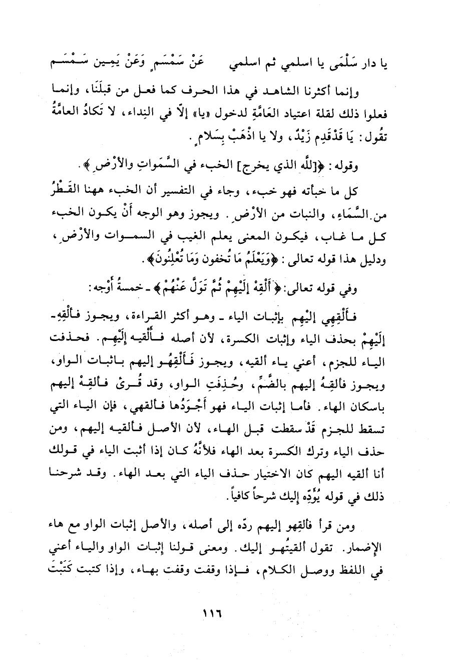 بإسكان الهاء، فأمَّا إثبات الياء فهو أَجْوَدُها فألقهي، فإن الياء التي