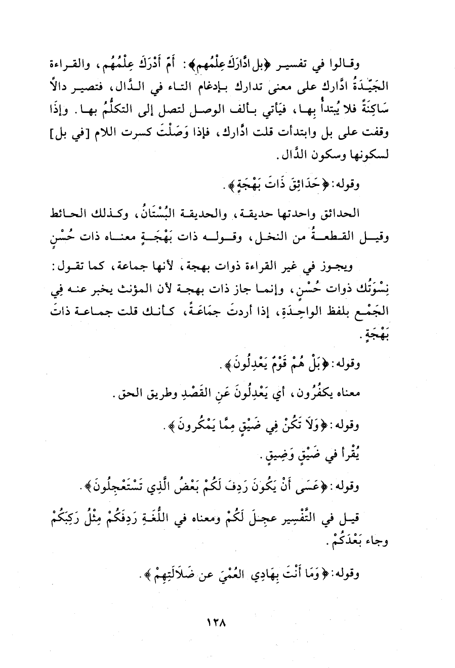 ويجوز في غير القراءة ذوات بهجة، لأنها جماعة، كما تقول: