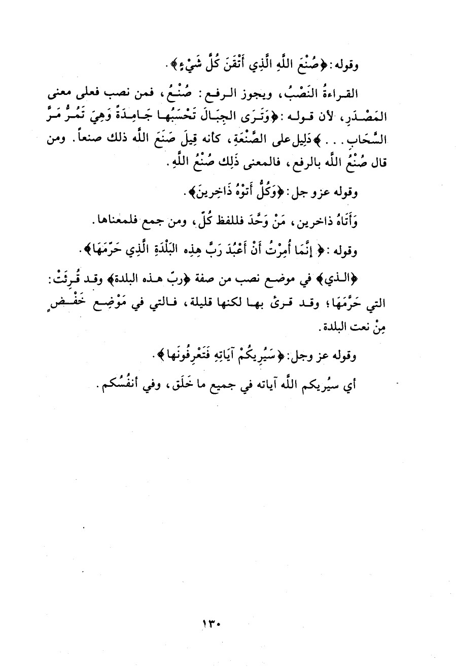 ومن قال (صُنْعُ الله) بالرفع، فالمعنى ذَلِك صُنْعُ اللَّهِ (1).
