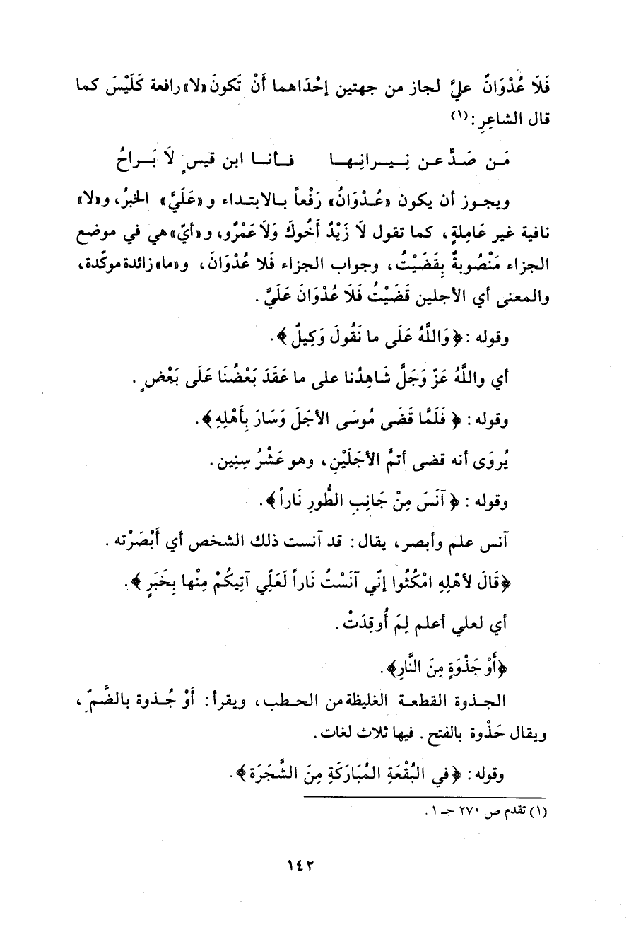 وقال المبرد: «وقد عَلِم أنه لا عُدْوانَ عليه في أتَمِّهما، ولكنْ جَمَعَهما ليجعلَ الأولَ كالأَتَمِّ في الوفاء». اهـ (الدُّرُّ المصُون).