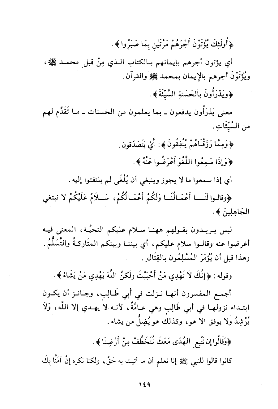 (أُولَئِكَ يُؤْتَوْنَ أَجْرَهُمْ مَرَّتَيْنِ بِمَا صَبَرُوا وَيَدْرَءُونَ بِالْحَسَنَةِ السَّيِّئَةَ وَمِمَّا رَزَقْنَاهُمْ يُنْفِقُونَ (54)