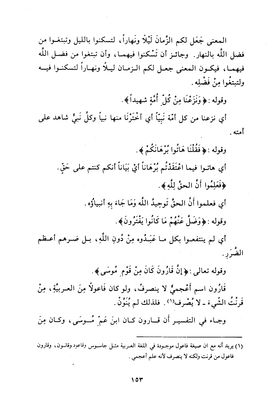 قَارُون اسم أَعْجمي لا ينصرف، ولو كان فَاعولًا مِنَ العربيَّةِ، مِنْ