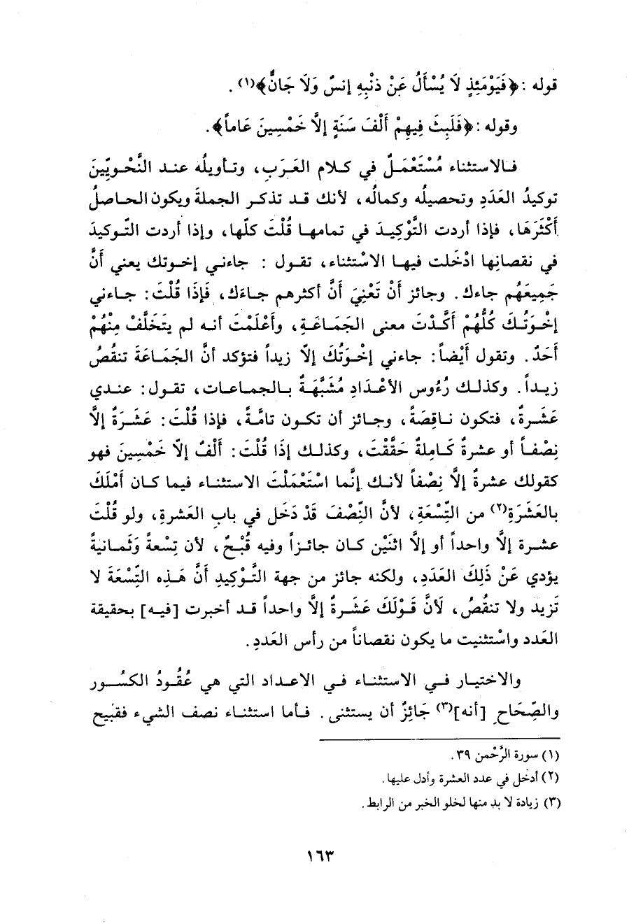 والاختيار في الاستثناء في الأعداد التي هي عُقُودُ الكسُور