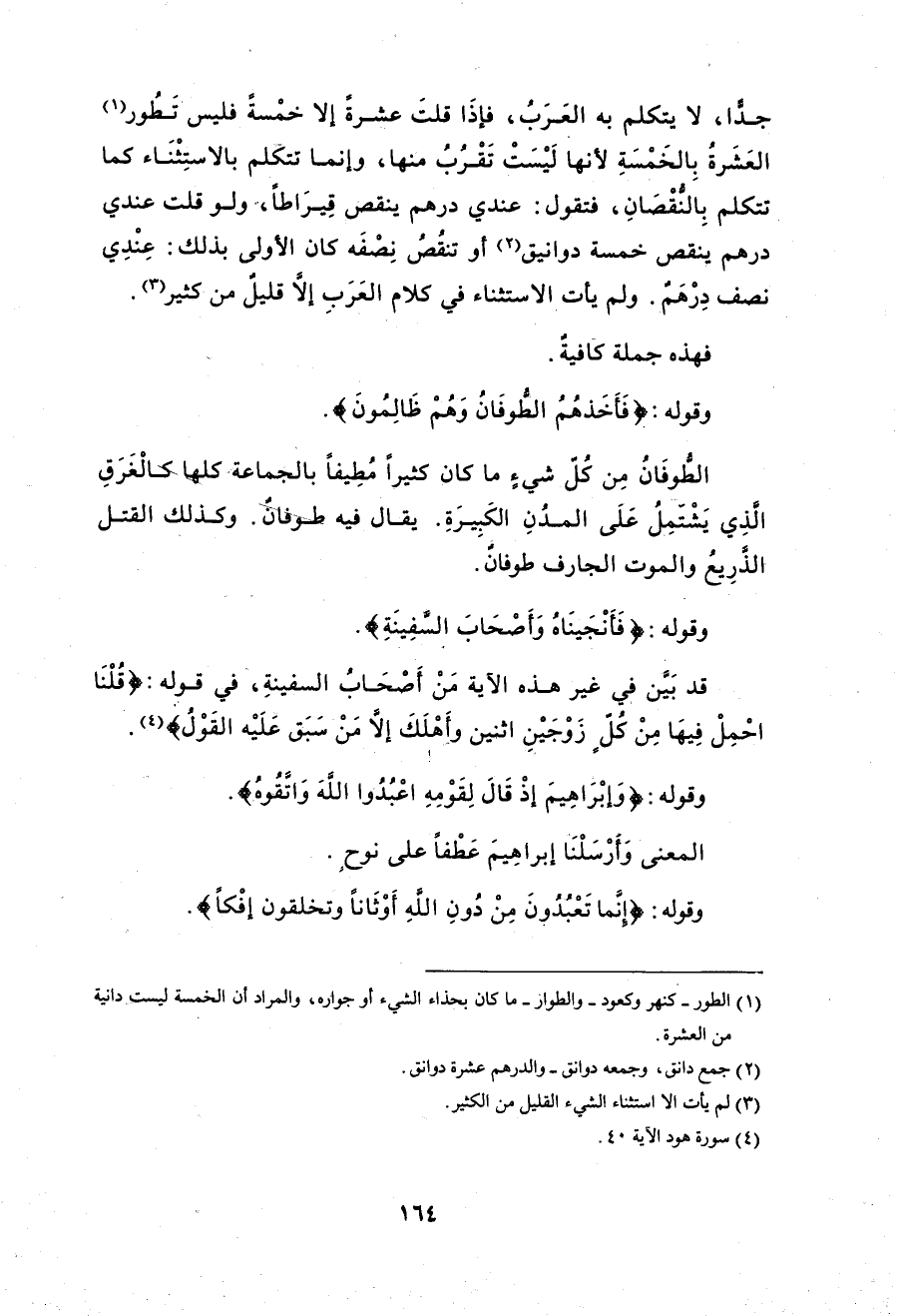 ولو قلت عندي درهم ينقص خمسة دوانيق أو تنقُصُ نِصْفَه كان الأولى بذلك: عِنْدِي نصف دِرْهَمٌ. ولم يأت الاستثناء في كلام العَرَبِ إلا قليلٌ من كثير.