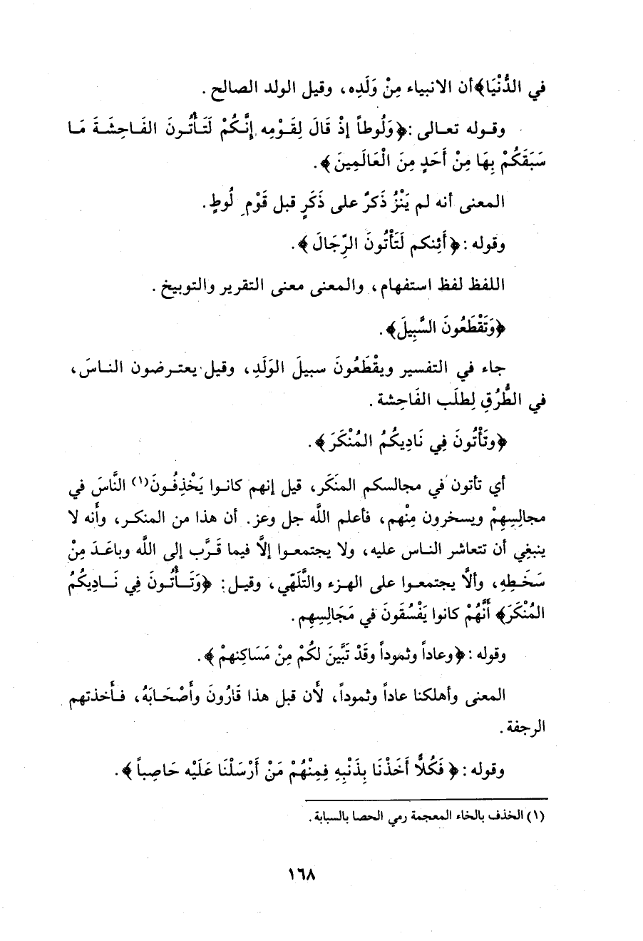 وقوله: (أَئِنَّكُمْ لَتَأْتُونَ الرِّجَالَ وَتَقْطَعُونَ السَّبِيلَ وَتَأْتُونَ فِي نَادِيكُمُ الْمُنْكَرَ فَمَا كَانَ جَوَابَ قَوْمِهِ إِلَّا أَنْ قَالُوا ائْتِنَا بِعَذَابِ اللَّهِ إِنْ كُنْتَ مِنَ الصَّادِقِينَ (29)