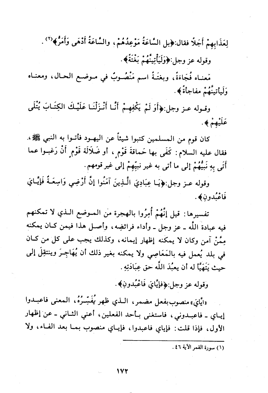 وقوله عزَّ وجلَّ: (يَا عِبَادِيَ الَّذِينَ آمَنُوا إِنَّ أَرْضِي وَاسِعَةٌ فَإِيَّايَ فَاعْبُدُونِ (56)