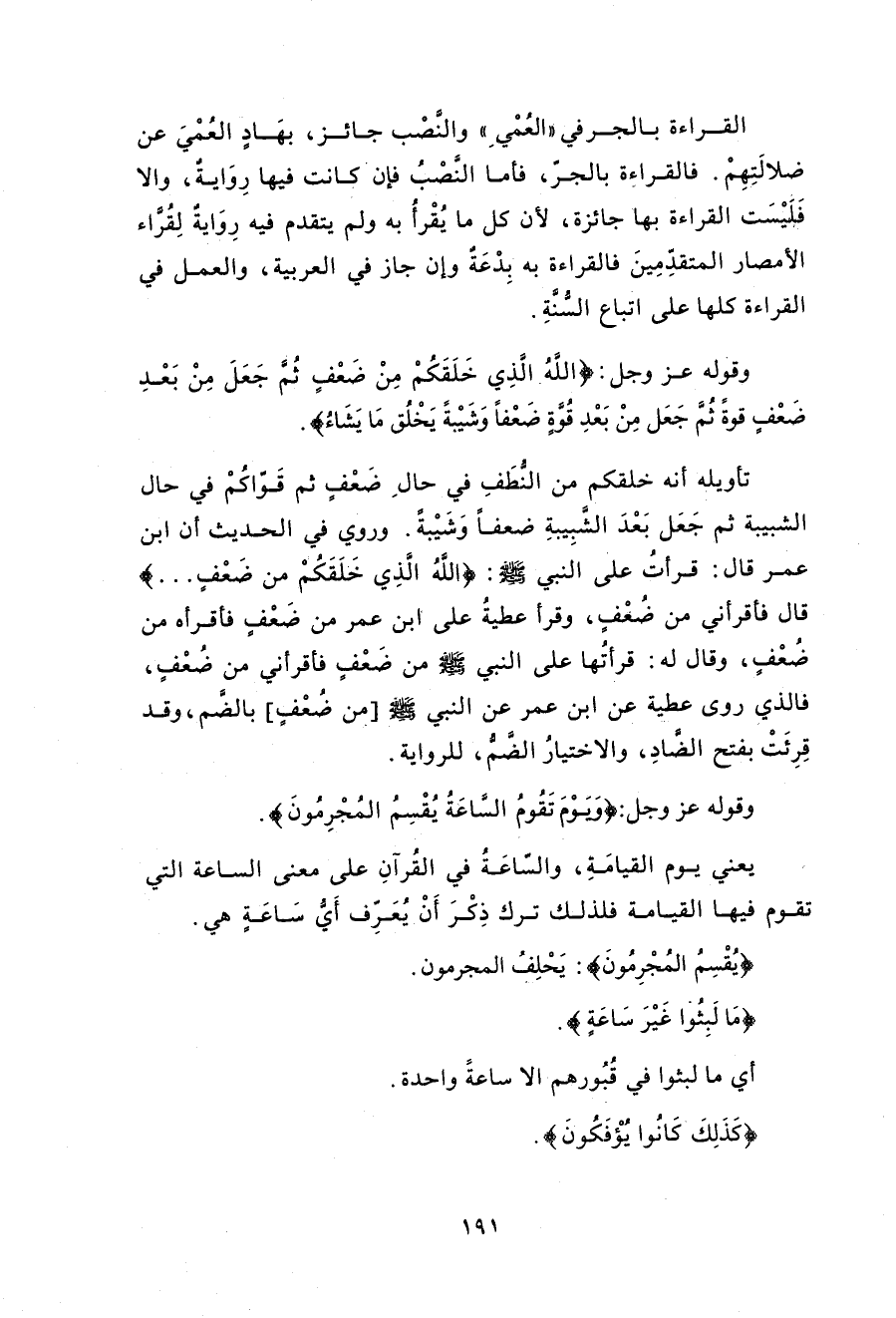 وروي في الحديث أن ابن عمر قال: قرأت على النبي - صلى الله عليه وسلم -: (اللَّهُ الَّذِي خَلَقَكُمْ مِنْ ضَعْفٍ).