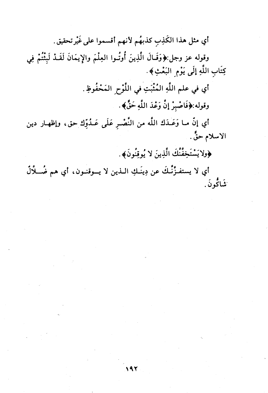 وقوله: (فَاصْبِرْ إِنَّ وَعْدَ اللَّهِ حَقٌّ وَلَا يَسْتَخِفَّنَّكَ الَّذِينَ لَا يُوقِنُونَ (60)