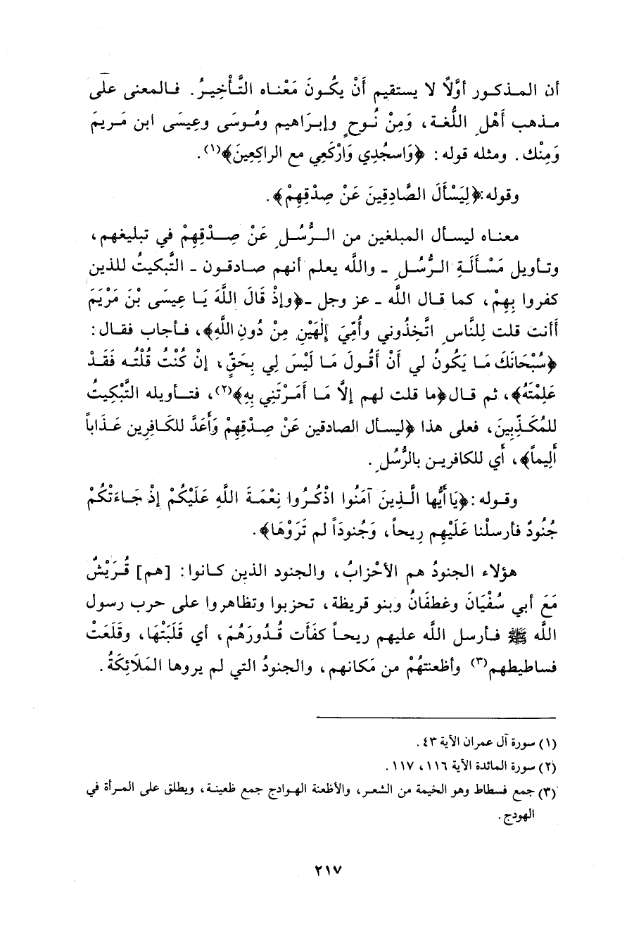 اللَّه - صلى الله عليه وسلم - فأرسل اللَّه عليهم ريحاً كفَأَت قذورَهم، أي قَلَبَتْهَا، وقَلَعَتْ فساطيطهم وأظعنتهمْ من مَكانهم، والجنودُ التي لم يروها المَلَائِكَة.